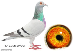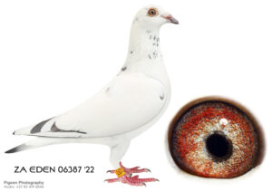 .LOT 2 EXCLUSIVE PIGEON PARADISE – ZA 22 PWFD 13250 – “SISTER BIANCA” -Her full sister “BIANCA” (15180 ZA ’22 PWF) Crowned as Winner of the Ace Pigeon Competition at Dinokeng OLR 2023 season. Her best performances were 13th position race 6 from Colesberg 655km 1236 m/m the race with the longest hours on the wing (10 minutes short of nine hours) & 5th on the drop of 8 pigeons in the BAR ZA LONA Race from Hanover, 724 km, 1488 m/m. She won a total of R130 000 in prize money. If you study the pedigree carefully you will find 3 diferent SANPO Gold Medal Winners, but 5 times represented. Also not to mention the granddam “SMOOTH SAILING”, she needs no introduction as she is probably the best to ever compete at Dinokeng OLR.SEE PEDIGREE!!!!