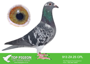 LOT 23 EARLY JANUARY – ZA 25 TOPPIGEON 63 – SAME BRED AS- Challenge Race SAPIR 2022. 2nd Kroonstad Training. 4th Springfontein Hotspot 4 SAPIR 2022 – EQUAL WINNER! BRED 9135 SAIPR HOTSPOT ACE WINTER 2024.————-Sire: 2524 WRRPA 16 ZAD. Kaasboer / Geert Munnik Johnny Boy. This cock is a direct grandson of the World Famous “KIRAN”. ——Dam: ZA 17 GJT 016 “SAPIR ACE” SAPIR HOTSPOT ACE PIGEON 2017. Her full brother were 9th Grand Average SAPIR 2022. Her brother has won and Gauteng West Combine with 3 Minutes. Her Sister Has won a Combine in PSWU Combine. Her Brother bred SANPO Bronze Medal for Andre Reynders. SEE PEDIGREE!!!