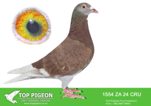 .LOT 1 HANNES TALJAARD – ZA 24 CRU 1554 -SIRE:471 ZA 21 ABL. RED CHECK.ALWYN BESTER. HIS SIRE BRED Grandfather to ZA PWDU 9849 2020, 3rd best WORLD ALLROUND BEST BIRD 2021, who is also the 6 x SANPO Gold Medal winner 2021. Also grandfather to ZA PWDU 9060 2020 ,second best Middle distance pigeon PWDU. SIRE to: ZA ABL 604 2022. HIS DAM IS INBRED BACK TO KITTEL.AND IS ALSO DAM TO “AMIRA” SANPO GOLD MEDAL WINNER AND SOLD FRO R252 000.00 ON TOPPIGEON.——————-DAM: 541 ZA 21 ABL . DIRK VAN DEN BULCK. HER SIRE BRED The winning striking rate of 63390 with his click hen 82930 is 80%. Here are just a few of their children: ZA ABL 531 2021 “Dynasty”Grand Averages Winner Dinokeng OLR 2022 1st ZA ABL 343 2021, PWDU winner.HER DAM IS INBRED BACK TO KITTEL. AND IS ALSO DAM TO “AMIRA” SANPO GOLD MEDAL WINNER AND SOLD FRO R252 000.00 ON TOPPIGEON.SEE PEDIGREE!!!