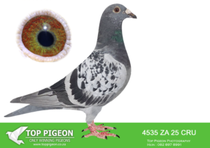 .LOT 1 GLOBAL AUCTION 2 – ZA 21 GRPF 955 -Final Race 31st 601km’s Africa PRO Gys Louw H/Sis to Double Combine Super Flying Machine Exceptional Performer. 82880/18 Gauteng Combine Winner 5000+ pigeons ————–SIRE:ZA 13 10033.Alias “Number One ” Strain: TURBO TOM/TWILIGHT Color: BLUE CHEQ Number One Stock Cock, HBtr “CONCORD” SANPO Gold Medal & MIRAGE 3x Winner also Gauteng Combine Winner. Sire & GSire to great OLR performers worldwide. GSire to Africa Pro OLR Final Winner @ 601km’s against 100 teams 1500p each from the best fanciers in the world. This Cock is a real super srar. In 2 years his offspring flew 29th Vic Falls Final ’22 two Grand Children flew top 10 Africa Pro Final. ————–DAM:ZA 16 GPU 12810 .Alias “Ten” Super Racer Line, “Auto Koppel” BOSUA x GRONDELAERS. One of the BEST breeders for Gys Louw. Click HEN to “Number One” Also bred super pigeons with 1125. SEE PEDIGREE!!!