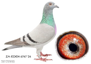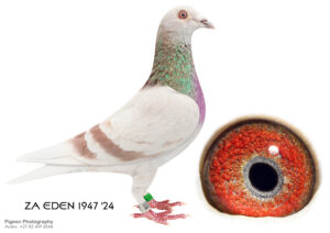 LOT 20 CORRIE NAUDE – ZA 24 EDEN 1947 -SIRE:28235 ZA 16.Inbred Houben-Clausing His father is Vinkie and he is a Grandson of Ziko SA who bred my Houben-Clausing winning pigeons. This cock bred us 5 times wining positions. All the birds out of this cock can be put to stock. Bred 3rd place ERPF winner from Kimberley (650 km).————DAM:7798 ZA TRPF 20 Houben-Clausing MIEL Houben-Clausing Houben-Clausing inbred bird. This hen also breed winners with different cocks. A great hen. Mother to a ERPF federation winner. 1st place ERPF federation winner from Groblershoop (580 km).SEE PEDIGREE!!!!