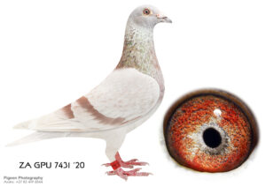 LOT 19 CORRIE NAUDE – ZA 20 GPU 7431 -This cock is the best Houben-Clausing you can use in the stock loft. His first round of babies he bred were winners for me. Bred 1st ERPF federation winner from Groblershoop (600 km)———–SIRE:31214 ZA 14.Houben-Clausing This is my no. 1 breeding Houben-Clausing cock. He is a son of ZIKO SA of which this was the last baby before he became unfertile. It is one of the last cocks bred like this that I have in my stock loft. Excellent proven breeder.————-DAM:29920 ZA 15 TOP BREEDER MEALY MIEL Inbred Houben-Clausing She is a top breeder and all of her offspring show the potential in racing and breeding. She is the mother of the best middel distance pigeon in 2017 and the 3rd best pigeon in 2018. Her sons also breed winners of which I put to stock.SEE PEDIGREE!!!!