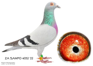 .LOT 2 EXCLUSIVE PIGEON PARADISE – ZA 22 PWFD 13250 – “SISTER BIANCA” -Her full sister “BIANCA” (15180 ZA ’22 PWF) Crowned as Winner of the Ace Pigeon Competition at Dinokeng OLR 2023 season. Her best performances were 13th position race 6 from Colesberg 655km 1236 m/m the race with the longest hours on the wing (10 minutes short of nine hours) & 5th on the drop of 8 pigeons in the BAR ZA LONA Race from Hanover, 724 km, 1488 m/m. She won a total of R130 000 in prize money. If you study the pedigree carefully you will find 3 diferent SANPO Gold Medal Winners, but 5 times represented. Also not to mention the granddam “SMOOTH SAILING”, she needs no introduction as she is probably the best to ever compete at Dinokeng OLR.SEE PEDIGREE!!!!