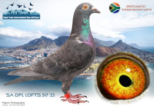 • .LOT 5 CAPETOWN LOFTS AUCTION 3 – DIEPLAAGTE LOFTS – ZA 25 DPL 517 -SIRE:ZA-2018-155490 “SOETDORING 90” Dieplaagte & Sterkfontein Lofts.Super son “Blue Gold” and “Black Gold” • 4e Hotspot 7 Diaz Lofts 440km 2019. • 36e Benzing Ave. 3700km com. Father to “Sterkfontein 21” • 7e Hotspot 5 Central Prov. Lofts 2021. • Equal 1e Final Central Prov. Lofts 2021. Super Genetics! Best of “Zander” “Birdy” “Bjarne” “Boeing” and Black Oswald’s, Soetdoring Gold. ================DAM:ZA-2021-DPL-15 Dieplaagte & Sterkfontein Lofts.Bred from “Mr.Africa” One of Our Superstars and Top Breeders! Half-sister to the mother of, • 1e Final Diaz Lofts 635km 2025. • 1e Baby Series Diaz Lofts 2025. • 1e Big 5 Diaz Lofts 2025. • 1e Team Comp Diaz Lofts 2025. • 23e Charity Race Diaz Lofts 2025.SEE PEDIGREE!!!!