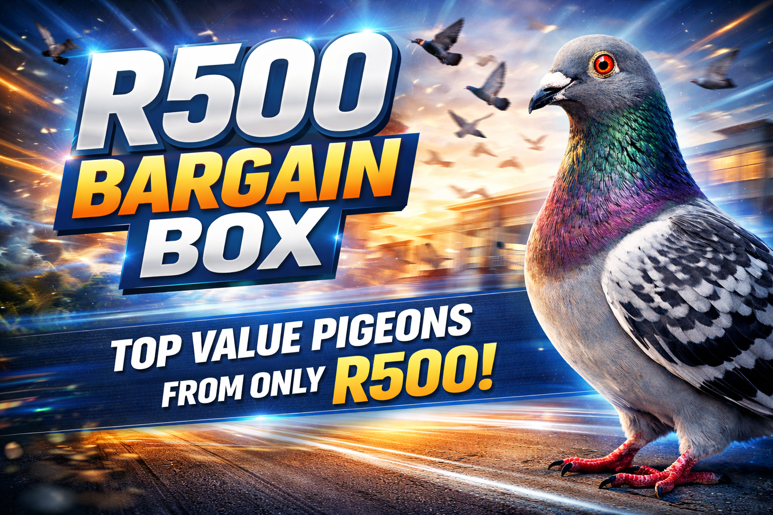 LOT 10 R500 BARGAIN BOX – ZA 23 BPFD 1327 – SIRE:2744 BPFD 18 ZA “No.1 Taylor Cock”, a super breeder already responsible for multiple Bloemfontein Federation winners, confirming his class both on the road and in the breeding loft. He carries the renowned De Norre Wouters Albrecht / Taylor bloodlines, known for consistency and durability.———-DAM:2581 ZA 19 BPFD. built from elite JJ Van der Linde and top Belgian bloodlines. Her sire, 1492 BPF 19 ZA “JJJ’s Check Apple”, is a top breeder, responsible for: 🥇 1st Bloemfontein Federation (744 km, 2024) Full brother to multiple hotspot and final winners at Dinokeng OLR This line traces back to: 09368 THU 08 ZA (“Oogappel”) – direct daughter of the legendary R80,000 Super Pair 4018172 BELG 09 “Lucky 172” – direct super breeder from Bak 17 line.SEE PEDIGREE!!!!