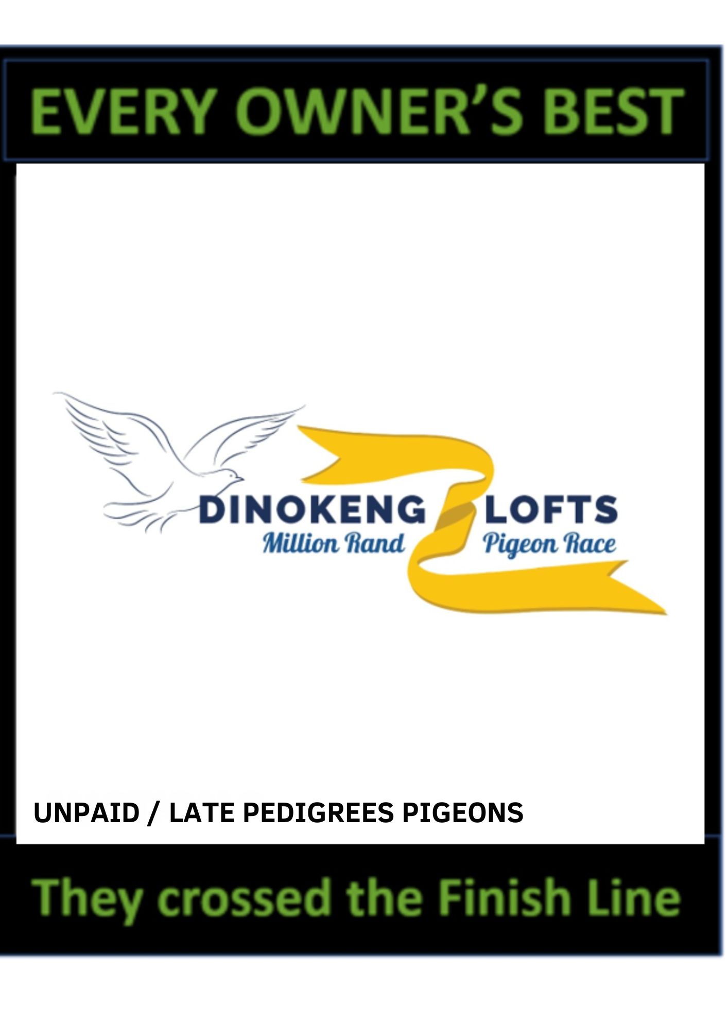 LOT 15 DINOKENG OLR UNPAID / LATE PEDIGREES -J & W LOFTS ZA MID 24- 3254 -SIRE:MID 2023 15364 BB. GOOSEN/VAN ECK.———-DAM:MID 15356 BB 2023. VAN RIEL/JANSEN.SEE PEDIGREE!!!