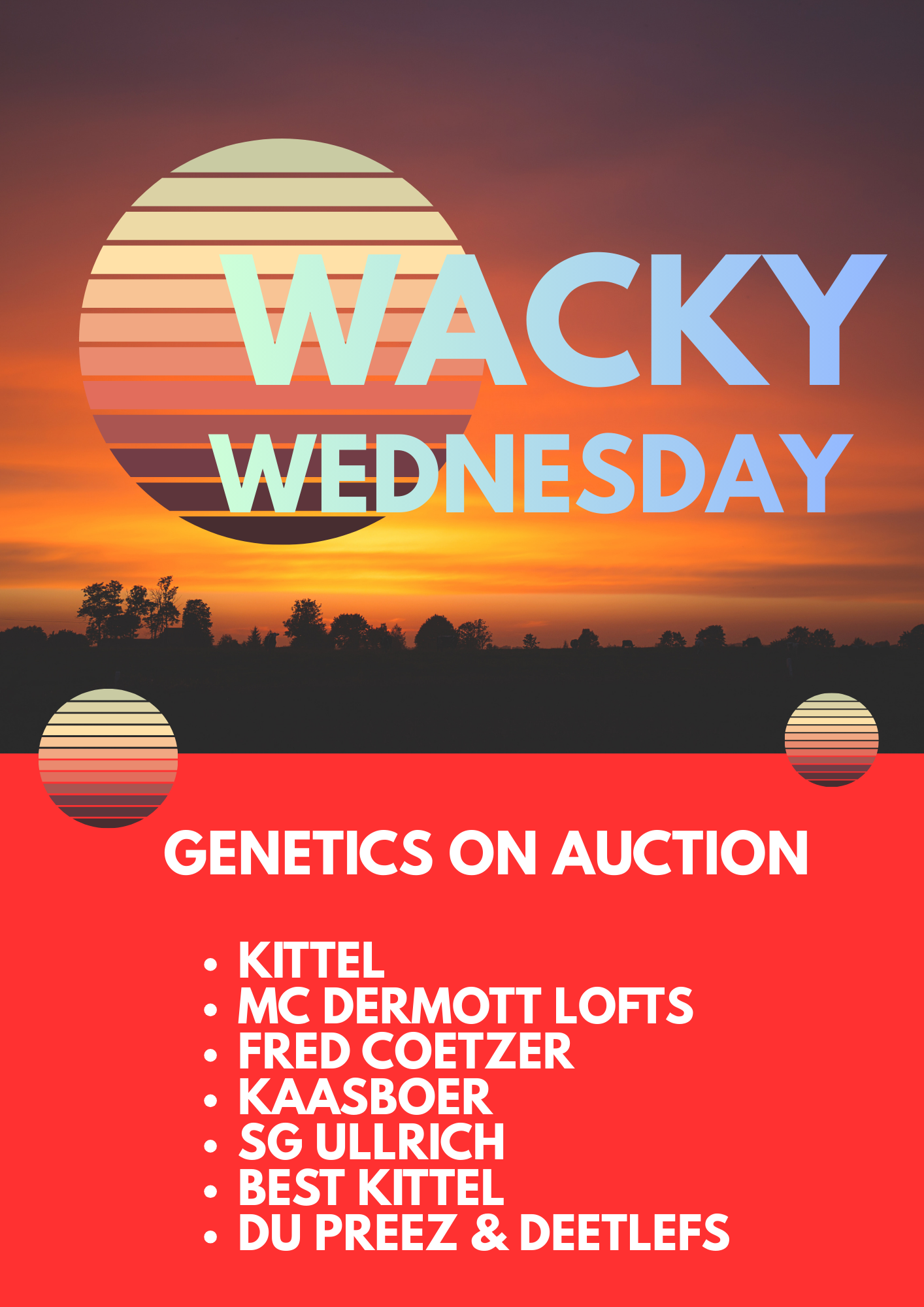 .LOT 8 WACKY WEDNESDAY –1873 ZA 25 SLIM -SIRE:ZA-2023-GPU-2097 Team Gullett Strain: Christiaens Van Loon.————-DAM:ZA-2024-NFS-721 Danie Hattingh.Bred from a click couple!! They bred multiple winners for Vyver Krog.SEE PEDIGREE!!!