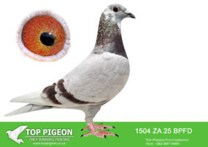 .Lot 1 TOPPIGEON END MARCH CYRILS 1427 15 BBPD COCK – The sire ZA SRF 00115-09 A Super Breeder. Sire to 9 wins in 2 Seasons at stock in 2 different stock lofts. Also sire to 2 different 3 x winners in two different stock lofts. Breeds 4 winners for Willie Steenkamp & Partner. Also sire to ZA SRF 01244-10 – 3 x winner Sire : ZA SRF 00115-09 “Proven Blue” Strain : Tom Lock Foundation ZA SRF 00115-09 A Super Breeder. Sire to 9 wins in 2 Seasons at stock in 2 different stock lofts. Also sire to 2 different 3 x winners in two different stock lofts. Breeds 4 winners for Willie Steenkamp & Partner. Also sire to ZA SRF 01244-10 – 3 x winner Dam: ZA THU 16036-09 “Pied Egg Hen” Strain : R100 000 EGG COCK Proven Breeder Half brother x half sister mating to the R100 000 EGG COCK. Also sister to ZA THU 16378-09 – 3 x winner Also sister to ZA OERF 09464-11 Super breeder of winners. SEE PEDIGREE !!!!!