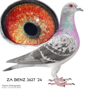 .LOT 1 EXCLUSIVE AUCTION – ZA 18 82440 -FULL SISTER OF MR MEDALS 4 X SANPO MEDAL WINNER FULL SISTER TO 4209 WHO BRED SANPO GOLD MEDAL WINNER FOR GYS LOUW—————-SIRE: 6720 ZA 12 PWF .Alias “MR BODY” Strain: KANIBAAL Color: Blue Check FATHER TO SANPO GOLD OVERALL 2018. SANPO GOLD MIDDLE DISTANCE 2000 PIGEONS SANPO SILVER CAT 1 GRAND FATHER TO SANPO GOLD MEDAL WINNER FOR GYS LOUW 2022 GRAND FATHER TO SANPO SILVER MEDAL WINNER MIDDEL DISTANCE 2023.————-DAM:04719 ZA 13 .Alias “”04719″” Strain: HENDRIK HUYSER Color: Blue Bar MOTHER TO 2 X SANPO GOLD MEDAL WINNERS OVERALL IN 2 YEARS. MOTHER TO 5 SANPO MEDALS IN 2 YEAR MOTHER TO 03987 SANPO GOLD MEDAL WINNER OVERALL 2017 WHEN MATED TO MY NR 1 COCK 1385 MOTHER TO SANPO GOLD OVERALL 200 PIGEONS 2018 SANPO GOLD MIDDLE DISTANCE 2018.SEE PEDIGREE!!!!
