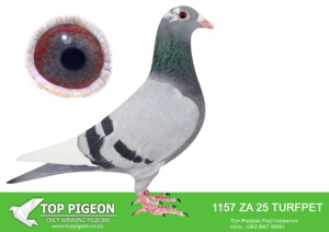 .LOT 4 HANNES TALJAARD – ZA 25 TURFPET 1157 -SIRE:9185 ZA 19 PRPC, is a direct product of the elite Alwyn Bester bloodline, bred from proven performance and world-class genetics.9185 BRED 1ST BIG MONEY RACE DINOKENG OLR , 3RD SAIPR OLR FINAL , GRAND FATHER TO 2ND SAIPR OLR FINAL. He is a full brother to “Golden Star”, winner of 6th Grand Averages Derby Arona (Canary Islands) 2017 against 3,037 pigeons — one of the toughest international competitions. This cock is loaded with top Janssen and Turbo Tom influence, carrying the blood of “Money Maker” and “Twilight Pearl”, both renowned for producing winners across multiple levels. His sire line traces back to 10232 ZA 09 (DNA 15/015), a SANPO Gold Medal winner (Overall 2015) and sire of multiple top performers, including 6th Grand Averages Derby Arona 2017. Further strength comes from 06104 ZA 15, a full sister to “Golden TT”, a super breeding hen responsible for producing Concorde (SANPO Gold Medal Overall) and other top combine winners. This sire represents a perfect blend of speed, endurance, and proven breeding power, making him an exceptional genetic contributor.——————DAM:9184 ZA 19 PRPC, is a beautifully bred hen from the Alwyn Bester line, combining both performance and elite breeding strength. She is a full sister to “Golden Star”, who achieved 6th Grand Averages Derby Arona 2017 against 3,037 pigeons — confirming the consistency of this family at the highest level. Her pedigree is built on the same powerful foundation as the sire, including 10232 ZA 09 (SANPO Gold Medal winner Overall 2015) and 06104 ZA 15, a direct daughter of one of the most influential breeding hens in the loft. The dam carries the influence of Janssen genetics, combined with Turbo Tom (“Money Maker”) blood, known for producing fast, durable, and intelligent race pigeons. Bred from a line of consistent performers and elite producers, she is also closely related to Concorde, one of the standout pigeons in South African racing.SEE PEDIGREE!!!!