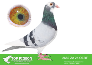 LOT 10 HANNES TALJAARD – ZA 25 OERF 2682 -SIRE:9185 ZA 19 PRPC, is a direct product of the elite Alwyn Bester bloodline, bred from proven performance and world-class genetics.9185 BRED 1ST BIG MONEY RACE DINOKENG OLR , 3RD SAIPR OLR FINAL , GRAND FATHER TO 2ND SAIPR OLR FINAL. He is a full brother to “Golden Star”, winner of 6th Grand Averages Derby Arona (Canary Islands) 2017 against 3,037 pigeons — one of the toughest international competitions. This cock is loaded with top Janssen and Turbo Tom influence, carrying the blood of “Money Maker” and “Twilight Pearl”, both renowned for producing winners across multiple levels. His sire line traces back to 10232 ZA 09 (DNA 15/015), a SANPO Gold Medal winner (Overall 2015) and sire of multiple top performers, including 6th Grand Averages Derby Arona 2017. Further strength comes from 06104 ZA 15, a full sister to “Golden TT”, a super breeding hen responsible for producing Concorde (SANPO Gold Medal Overall) and other top combine winners. This sire represents a perfect blend of speed, endurance, and proven breeding power, making him an exceptional genetic contributor.——————DAM:9184 ZA 19 PRPC, is a beautifully bred hen from the Alwyn Bester line, combining both performance and elite breeding strength. She is a full sister to “Golden Star”, who achieved 6th Grand Averages Derby Arona 2017 against 3,037 pigeons — confirming the consistency of this family at the highest level. Her pedigree is built on the same powerful foundation as the sire, including 10232 ZA 09 (SANPO Gold Medal winner Overall 2015) and 06104 ZA 15, a direct daughter of one of the most influential breeding hens in the loft. The dam carries the influence of Janssen genetics, combined with Turbo Tom (“Money Maker”) blood, known for producing fast, durable, and intelligent race pigeons. Bred from a line of consistent performers and elite producers, she is also closely related to Concorde, one of the standout pigeons in South African racing.SEE PEDIGREE!!!!