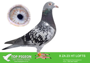 .LOT 5 HANNES TALJAARD – ZA 23 HT LOFTS 8 -SIRE:24038 ZA 10, is bred from a powerhouse combination of proven Twilight–Turbo Tom bloodlines, combining both speed and endurance. His lineage is built around top-performing genetics such as 2926 SA 05 (“Money Maker”), a pigeon renowned for exceptional union performances and consistency over distance, and 058 SA 05 PWF (“Twilight Pearl”), a foundation hen responsible for producing multiple winners and top middle-distance performers. This line is heavily reinforced by elite producers like 7232 SA 00 GRPA (“Bakkie Winner”) and 7253 SA 00 GRPA, both known for producing union winners and SANPO medal achievers. The inclusion of 8792 SA 03 PSPU and 5919 SA 03 PSPU further strengthens the pedigree with proven middle-distance excellence and championship breeding value. Overall, the sire represents a balanced genetic package of speed, durability, and elite breeding consistency, making him a strong contributor to winning families.—————-DAM:4791 ZA 15 NWPK/K, is a direct descendant of the legendary “Golden TT” line, one of the most successful families in South African pigeon racing. She is described as a full sister to “Golden TT”, a hen that has produced multiple winners and gold medal achievers across the country. Her pedigree mirrors the same elite foundation as the sire, incorporating 2926 SA 05 (“Money Maker”) and 058 SA 05 PWF (“Twilight Pearl”), ensuring a deep concentration of Twilight–Turbo Tom genetics known for producing high-performance racing pigeons. The dam’s side is further strengthened by repeated appearances of top breeders such as 7232 SA 00 GRPA, 7253 SA 00 GRPA, and 8792 SA 03 PSPU, all contributing to a lineage rich in SANPO performers, union winners, and proven stock birds. She represents a true breeding hen with elite genetic depth, capable of consistently producing top-class racers and future breeders..SEE PEDIGREE!!!!