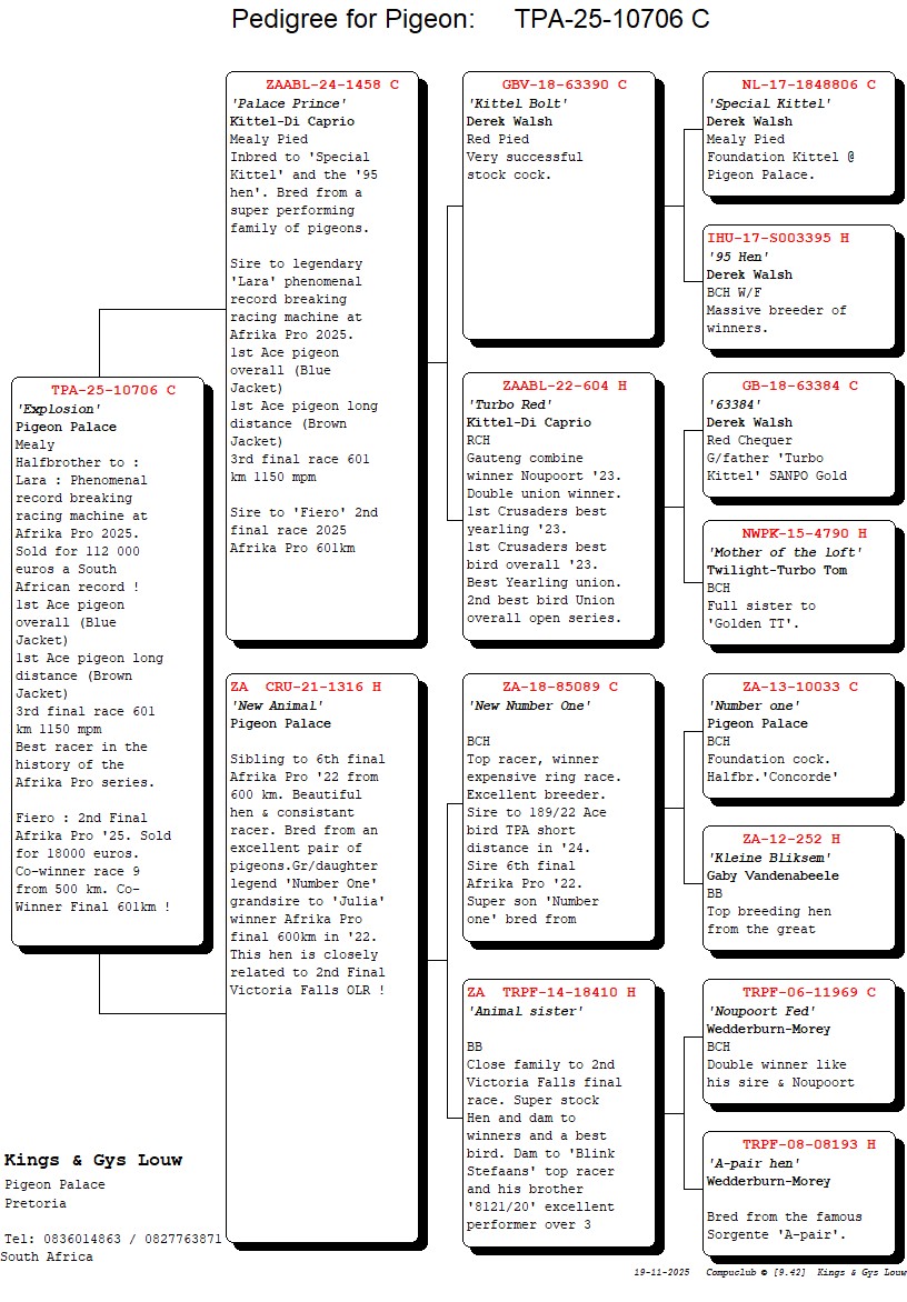 Racing pigeon auctions in SA and abroad