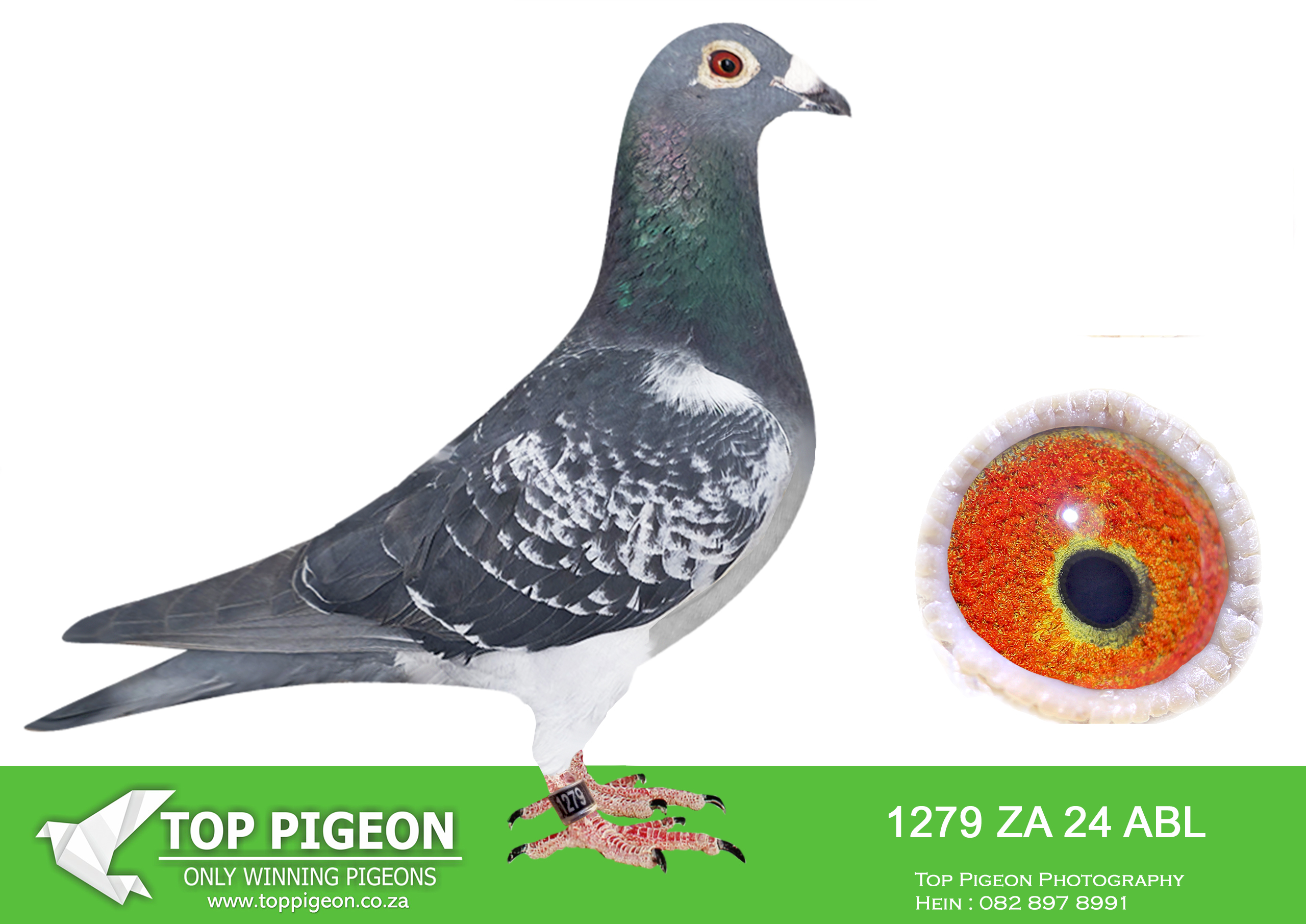 LOT 10 ALWYN BESTER – ZA 24 ABL 1279 -Full brother to ABL 1322, Ace Pigeon Overall Tshwane Pigeon Association 2025 2nd Ace Pigeon Overall Combine of Greater Gauteng 2025————SIRE:ZA 22 ABL 882 (SOLD FOR R162 000.00 ON TOPPIGEON)-Full brother to ZA ABL 167 2020 (SOLD FOR R338 000.00 ON TOPPIGEON), dam to TURBO KITTEL, 8 x SANPO medals in 2021.This cock was kept for stock. Something special!!!!!—————DAM: 00436 ZA 15 . Strain: Alwyn Bester Color: Blue Chequer. BRED 3 DIFFEREENT PRETORIA UNION WINNERS. BRED DINOKENG HOTSPOT WINNER. BRED 1322 1ST ACE BIRD TPA 2025. This hen is bred from two super pigeons. She raced very well and will be a super breeding hen. 2nd Dewetsdorp Pretoria Union, beaten by her loft mate by 2 seconds..SEE PEDIGREE!!!