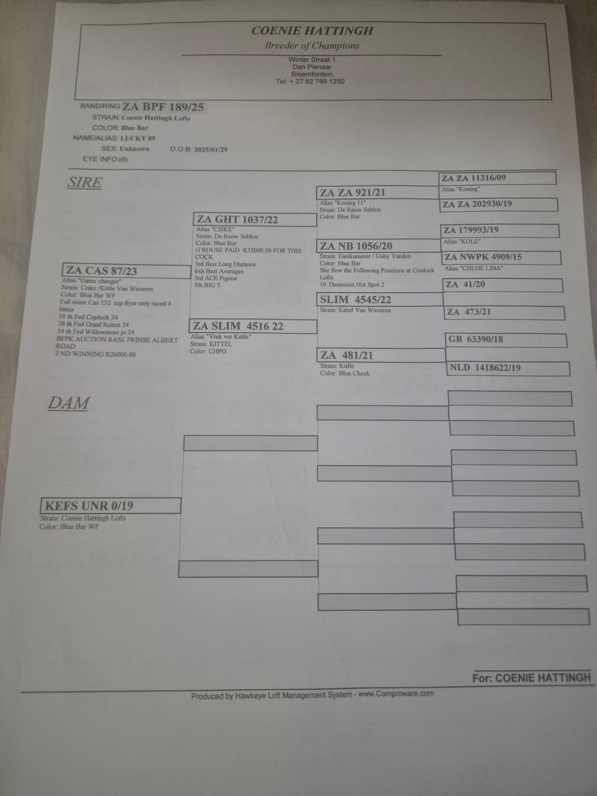 Highest bidder was: coenie hattingh