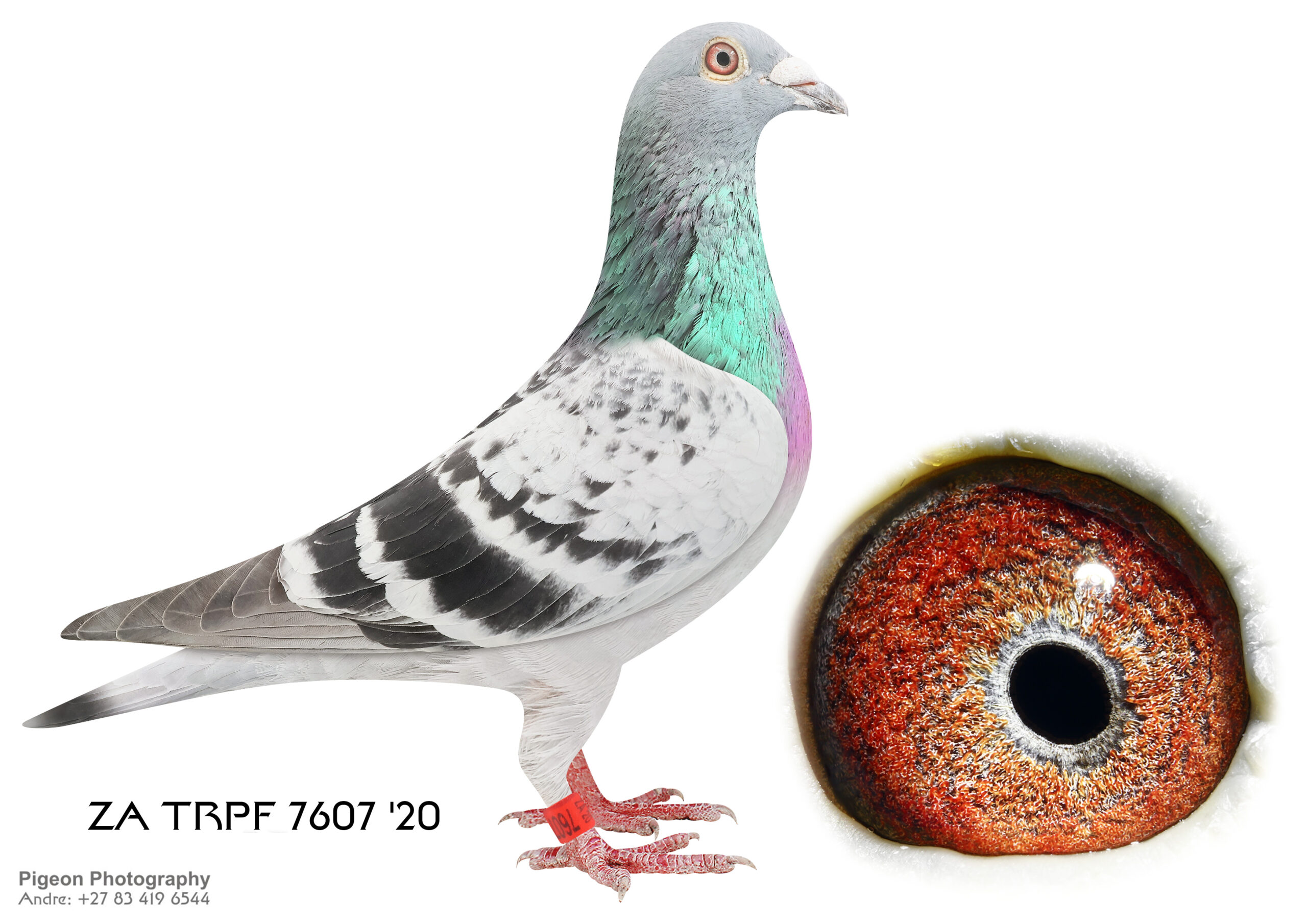 LOT 20 CORRIE NAUDE 2 – ZA 20 TRPF 4858 -SIRE:29737 ZA 15.Sanpo Gold Medal Pair The father is Seabiscuit who was the SANPO Gold Medal winner. The best bird over all distances. Mated to Hetti. One of the best Million Dollar Race pigeons, bred out of Gabi Vandenabeele bloodline. The legendary Wittenbuik cock in Belgium.———DAM:3036 ZA GPU 18 Gold Medal BBPD Sanpo Gold & Silver Medal Pair Short Dis The Sire of this hen is a Spritzie Jansen Cock and 3 x winner. Best pigeon in the WRRPA and one of the SANPO Gold Medal Short Distance winners. The Dam of this hen is my SA National Pigeon Organisation Silver Medal Winner Short distance 2013.SEE PEDIGREE!!!!