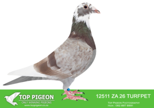 .LOT 3 MASTERS AUCTION – ZA 26 TURFPET 12511 -Cousin to “Lara” Record breaking racing machine and best racer in the history of Afrika Pro Series. • 1e Ace Blue Jacket Afrika Pro 2025. • 1e Ace Brown Jacket Afrika Pro 2025. • 3e Final Afrika Pro Series 601km 2025. • 9e Race 9 Afrika Pro Series 2025. • 12e Race 6 Afrika Pro Series 2025. Sister “Zara” sold for R203 000 – Top Pigeon!————–SIRE:ZA-2022-CRU-102.”BROTHER MIENKE”.Pigeon Palace.Brother to “Mienke” • 1e Final Dinokeng Big Money 2021. • 2e Final Barzalona Car Race 2021. One of the best ever at Dinokeng! Full brother to the mother of “Lara” • 1e Ace Blue Jacket Afrika Pro 2025. • 1e Ace Brown Jacket Afrika Pro 2025. • 3e Final Afrika Pro Series 601km 2025. Full brother to the mother of “Fiero” • 2e Final Afrika Pro Series 601km 2025. ====================DAM:ZA-2023-TRPF-12139 Mc Dermott Lofts Bont She is bred from: • 1e Final Saipr Winner 2022. • 1e Final Carnival Summer Winner. Same Family that won Diaz Lofts!! (for Johann Grobelaar).SEE PEDIGREE!!