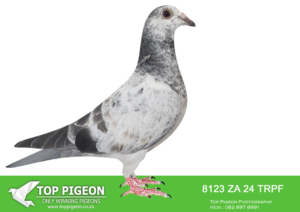 LOT 11 MASTERS AUCTION – ZA 24 TRPF 8121 -Cousin to “Lara” Record breaking racing machine and best racer in the history of Afrika Pro Series. • 1e Ace Blue Jacket Afrika Pro 2025. • 1e Ace Brown Jacket Afrika Pro 2025. • 3e Final Afrika Pro Series 601km 2025. • 9e Race 9 Afrika Pro Series 2025. • 12e Race 6 Afrika Pro Series 2025. Sister “Zara” sold for R203 000 – Top Pigeon!————–SIRE:ZA-2022-CRU-102.”BROTHER MIENKE”.Pigeon Palace.Brother to “Mienke” • 1e Final Dinokeng Big Money 2021. • 2e Final Barzalona Car Race 2021. One of the best ever at Dinokeng! Full brother to the mother of “Lara” • 1e Ace Blue Jacket Afrika Pro 2025. • 1e Ace Brown Jacket Afrika Pro 2025. • 3e Final Afrika Pro Series 601km 2025. Full brother to the mother of “Fiero” • 2e Final Afrika Pro Series 601km 2025. ====================DAM:ZA-2023-TRPF-12139 Mc Dermott Lofts Bont She is bred from: • 1e Final Saipr Winner 2022. • 1e Final Carnival Summer Winner. Same Family that won Diaz Lofts!! (for Johann Grobelaar).SEE PEDIGREE!!