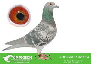 .LOT 5 MASTERS AUCTION – ZA 17 SANPO 27819 -Super racer union & Gauteng Combine winner. Linebred to the very best SANPO medal winning birds in this family.This is a super hen that bred top racers. also 2 GRPF winners. Dam to 7629/20 a 4x winner also 4x 2nd in Alberton GPU club. 7629/20 SANPO Bronze medal winner short distance. Best bird in club and union.————-SIRE:ZA-13-10033 C “NUMBER ONE”.Foundation cock.. Halfbr. ‘Concorde’ SANPO Gold medal & ‘Mirage’3 x winner also Gauteng combine winner. Sire & g/sire to great performers OLR and union level.G/sire Africa Pro OLR final winner.————-DAM:ZAD-14-06223 H ‘Roomy Twilight’ Twilight-Turbo Tom.Union & Combine winner by 5 minutes from Noupoort 700km. Super racer over any distance. Excellent breeder. Dam to two Gauteng Combine winners also SANPO Gold medal winner allround 2019 against 500 plus birds Category A ! Very close family of superhen ‘Golden TT’.SEE PEDIGREE!!!