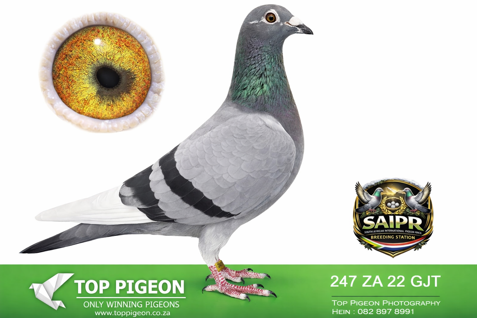 LOT 32 SAIPR BREEDING STATION – 974 ZA 20 GJT -17TH ACE BIRD CAPETOWN IOLR 2021———-SIRE: “CARELLI’S BEST” (Bak 17 Line) A top-class breeding cock built from the elite Bak 17 × Carelli Sablon foundation, known for producing consistent winners. He carries the blood of proven performers like “Mr Joy” (05891 GPU 13 ZA) – a top Verbesselt-based breeder responsible for multiple race winners, including performances in Million Euro & Taiwan races. On the dam side of the sire we find “Carelli Ace Line” (05777 GPU 13 ZA), a daughter of multiple winner breeders, reinforcing the Carelli Sablon strength. This cock is tightly bred to a powerful combination of De Rauw Sablon, Aelbrecht, and Bak 17, with influence from “Lucky Freddy” and “Marcelina”, both known for producing OLR super racers and high-performing progeny.————DAM: Direct KAASBOER Dynasty (Nr 1 Hen Line) An exceptional hen bred from the very best Kaasboer blood in South Africa, directly linked to the legendary “Gold Gouda P1600189” and “Kiran P1600177”. “Gold Gouda” – Nr 1 Kaasboer cock in SA, sire to a 7x winner, 3rd SAPIR, and multiple top performers. “Kiran” – Nr 1 Kaasboer hen in SA, dam of 7-time winners, SAPIR performers, and several proven breeders. This hen originates from the famous MC Hansen Kaasboer stud (Denmark), combining “Koe Oog” and “Bon Duivin”, two of the most influential Kaasboer pigeons ever imported. 👉 A powerhouse dam line known for consistency, durability, and top-level winning ability across generations.SEE PEDIGREE!!!