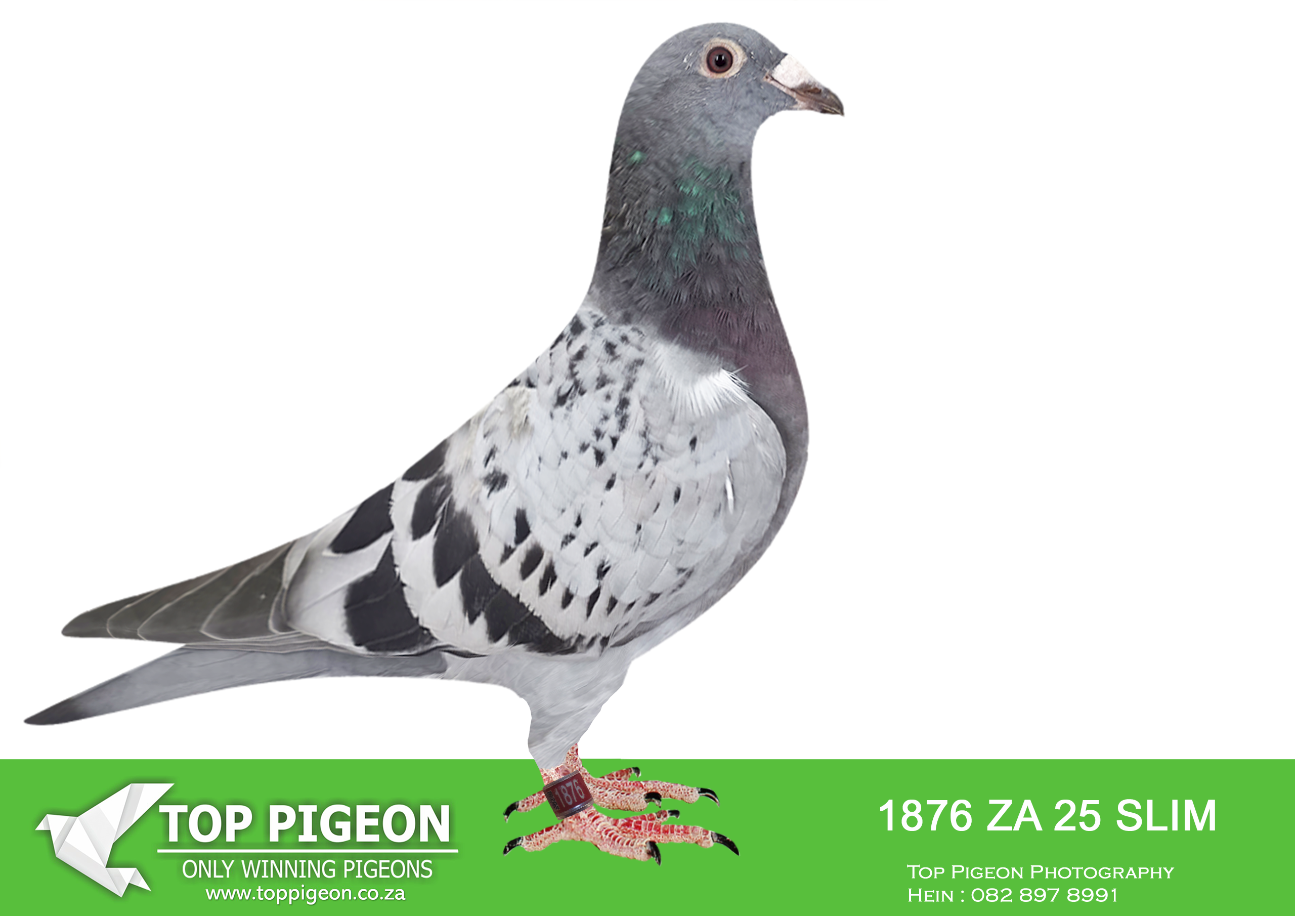 LOT 14 CREAM OF THE CROP AUCTION 2 -1876 ZA 25 SLIM -SIRE:ZA-2020-ABL-144 Alwyn Bester Dirk Van Den Bulck Red Purchased for R36 000.00 – Top Pigeon. ================DAM:ZA-2021-OERF-3441 Blue. JAN VENTER/TOM LOCK.SEE PEDIGREE!!!