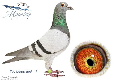 LOT 13 FERDIE LUBBE “MOUNTAIN LOFTS” – ZA 19 MOUN 895 -BREEDER OF WINNERS BRED FOR STOCK LAST SON OF THE BOSS “THE BOSS” ZA08 41808 DNA 15/097 2 X COMBINE WINNER AND ONLY PIGEON BACK ON THE DAY IN PTACOMBINE WITH A COMBINED TRPF LIBERATION FROM CRADOCK 760KM 1ST ACE PIGEON GOLD MEDAL PTA-FED 2 YEAR OLD 2010—————SIRE:ZA 08 41808 .Alias “”THE BOSS”” Strain: FERDIE LUBBE DESMET Color: BLUE BAR “THE BOSS” ZA08 41808 DNA 15/097 2 X COMBINE WINNER AND ONLY PIGEON BACK ON THE DAY IN PTACOMBINE WITH A COMBINED TRPF LIBERATION FROM CRADOCK 760KM 1ST ACE PIGEON GOLD MEDAL PTAFED 2 YEAR OLD 2010 1ST ACE PIGEON GOLD MEDAL PTAFED OPEN SERIES 2010.———–DAM:ZA 16 MOUN 297.Alias “PIED HEN” Strain: FERDIE LUBBE DESMET Color: BLUE CHECK PIED “PIED HEN” ZA 16 MOUN 297 THIS IS A TOP DESMET HEN BABIES PERFORM ON THE DIFFICULT RACES OWN PERFORMANCE 16TH PTA-UNION WINBURG 339KM 1229 PIGEONS 17TH PTA-COMBINE WINBURG 339KM 2202 PIGEONS 42TH PTA-UNION COLESBERG 641KM 1040 PIGEONS.SEE PEDIGREE!!!!