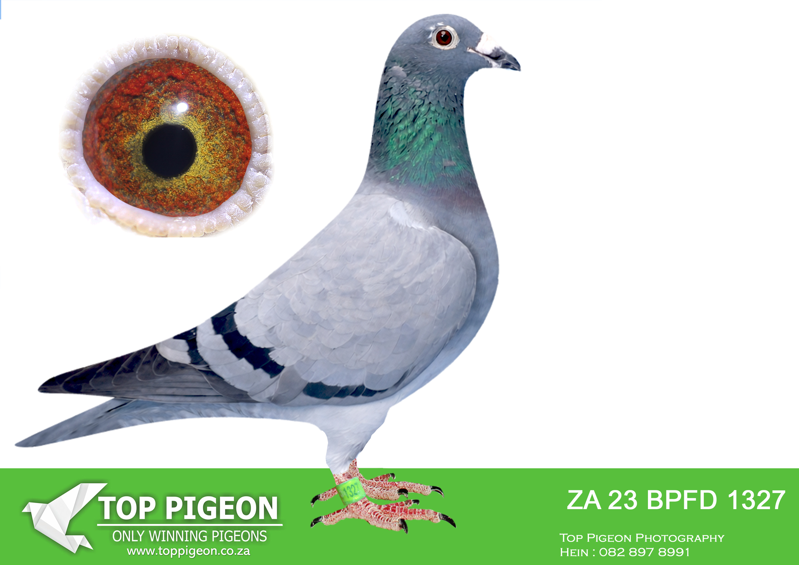 .LOT 5 WACKY WEDNESDAY –ZA 21 VPU 3848 -‘Grizzle Jnr’ Crack Aelbrecht Grizzle Top breeder and full brother to 6734/18 Grizzle cock & sire to National Ace pigeon ‘Zarina’ SANPO Gold medal winner 22 allround. She is one of the best racers and breeders we ever owned. This cock ‘Grizzle Jnr’ bred two TRPF winners & one GRPF win.Super specimen and a gift from Andries Fivaz VPU. Line Crack Aelbrecht famous hen brought in from Belgium by Gys Louw.————-SIRE:VPU/D-14-1444 C.Union winner bred from 2 Combine Winners.Grandfather to the great Queen of Africa “Zarina “SANPO Gold medal winner allround 2022.————–DAM:VPU-13-5374 H ‘Super Panini’ Pigeon Palace.No 1 stock hen Fivaz. Motherk grandmother and GG mother of numerous winners. Aelbrecht x Bosua line. Super stock hen.SEE PEDIGREE!!!