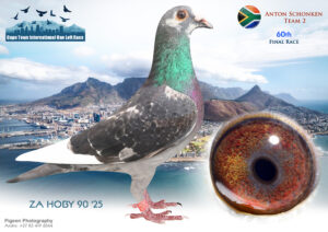 .LOT 1 CAPETOWN LOFTS – Leohan Hokke Team 1-ZA-LEO-25-24*** -1st Final Race Winning R140 000.00 , 2nd Ace Bird Winning R25 000.00 , Team Comp Winner Winning R25 000.00————-SIRE:ZA-2021-OERF-6097 “LITTLE JOHNNY” Booyse Family Lofts. GANUS. World-class bred back to “Wolverine” Father to: 1e Final Cape Town Int. Summer 2026. 2e Ace Cape Town Int. Summer 2026.————-DAM:ZA-2023-VSD-774 Leohan Lofts.Linebred to “Mr Africa” One of the Superstars and Top Breeders! He bred 24 pigeons scoring in the Top 10 in One Loft Racing over 4 years! Half-sister to o.a 3e Noupoort 565km Marlbank 2025. 12e Springfontein 442km Marlbank 2025. 21e Reddersburg 365km Marlbank 2025. 23e Ace Saipr Winter 2025. 25e Colesberg 520km Marlbank 2025. 30e Hotspot 1 Saipr Winter 2025. 69e Hotspot 3 Saipr Winter 2025. 79e Hotspot 4 Saipr Winter 2025. 162e Final Saipr Winter 2025. 114e Hotspot 2 Saipr Winter 2025.SEE PEDIGREE!!!