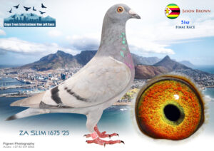 .LOT 4 CAPETOWN LOFTS – Triple J Lofts Team 3-ZA-JJJ-25-49*** -4th Final Race Winning R30 000.00 , 10th HS4 EQUAL WINNER , 8th HS2 EQUAL WINNER—————-Sire: ‘ROMU JNR’ ZA 2017 Triple J Lofts 219 Notes: ‘ROMU JNR’ is Sire of: 1. JONIQUA a super racer at the 2023 Cape Town International Pigeon race: 6th Final 450km, 2nd Hot Spot 2 226km, 2nd Hot Spot 4 180km, 18th Hot Spot 1 175km! 2. JACK a super racer at the 2026 Cape Town International Pigeon race: 4 th Final 470km, 10th Hot Spot 4 325km, & 8tth Hot Spot 2 225km 3. JAKE – 83rd Pattaya 600km Final Endurance Race 4. TOMMY (completed 2024 Carnival Gold Cup) – TOMMY bred two super racers in the 2025 Cape Town Summer Series – JEER & JUSTIFY – who were the 1st & 2nd ‘Hot Spot’ Ace Pigeons after Hot Spot 4!!! ———-DAM:Dam: ‘LUZIA’ AU 2020 GFL 168 Notes: ‘LUZIA’ is full Sister THOMAS 6 – 1st Golden Algarve Final Race! 24 Minutes Against 2,132 Pigeons From 315 Miles!! SEE PEDIGREE!!!