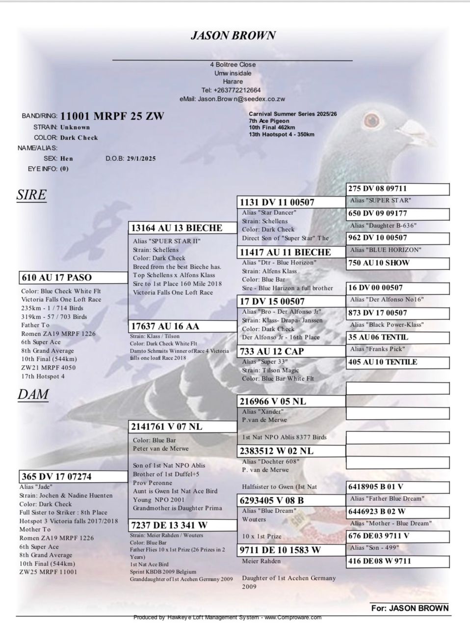 Racing pigeon auctions in SA and abroad