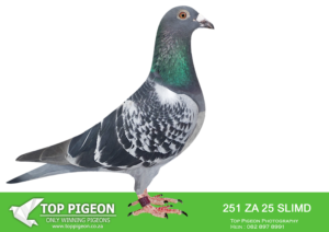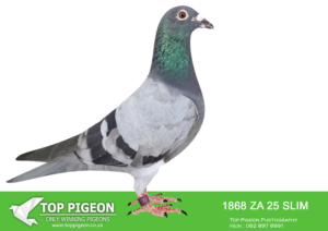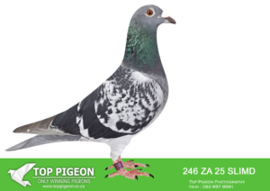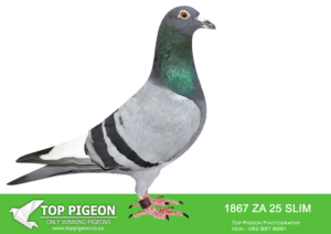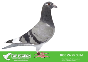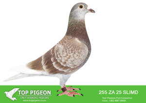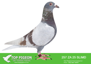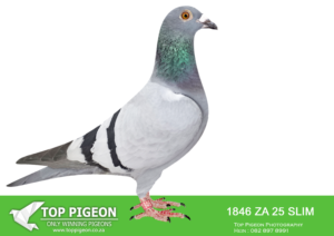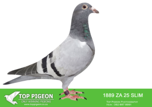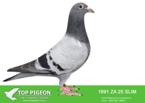 .LOT 4 CREAM OF THE CROP AUCTION 2 – 1891 ZA 25 SLIM -SIRE:ZA-2022-JB-412 Du Preez & Deetlefs Mealy Full brother of “Turbo Kittel” • 1e Ace Pigeon FCI in the World!!!! • 5x Winner in his first year. • 1e Ace Overall South Africa. • 8x Sanpo Medal Winners. • 6x Sanpo Gold Winners. • 1x Sanpo Silver Winner. • 1x Sanpo Bronze Winner. Father to 7 Winners already!! =============DAM:ZA-2022-SLIM-3333 Checkered Linebred to “18523”.SEE PEDIGREE!!!!