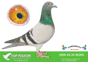 LOT 16 SURPRISE AUCTION – ZA 24 BORD 2959 -THE FATHER “20047 WAS PURCHASED ON THE GADDIN DONOR AUCTION IN EAST LONDON. HE IS THE SIRE OF THE CAR WINNER DIAZ THE MOTHER PRODUCED THE R60,000 WINNER AT DINOKENG FINAL PROVING THEIR ABILITY TO CARRY ON PRODUCING EXCELLENT ONE LOFT BIRDS.24TH BEST BIRD CRADOCK 2025.NEST MATE TO 1633/19 LEX, FATHER TO CAR WINNER 2023.SEE PEDIGREE!!!