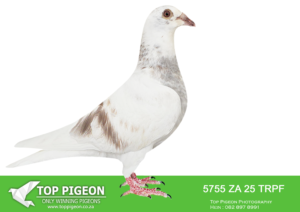 .LOT 2 SURPRISE AUCTION – ZA 25 TRPF 5755 -SIRE:ZA-2023-GPU-4746 TNT Elite Centre Best Kittel Mealy A superbly bred pigeon with genetics acquired from two top lofts in SA – JJJ Lofts and Aces Lofts. Sire “Enzo” purchased for R53 000.00 at the Saipr Auction. His sire is a direct son of the World-famous “Best Kittel” His dam is the 7e Nat. Ace for Stefaan Lambrechts. “Best Kittel” is also her sire, and her dam is a direct daughter of “Best Kittel” ===============DAM:ZA-2018-TRPF-22097 Mc Dermott Lofts.Inbred to “Double Ring” – Hermans Clausing. He bred 3x Fed winners and a few 2e Fed positions with different hens. He is responsible for over 20 winners and multiple Top 10 score’s. He is considered one of our base breeders.SEE PEDIGREE!!!