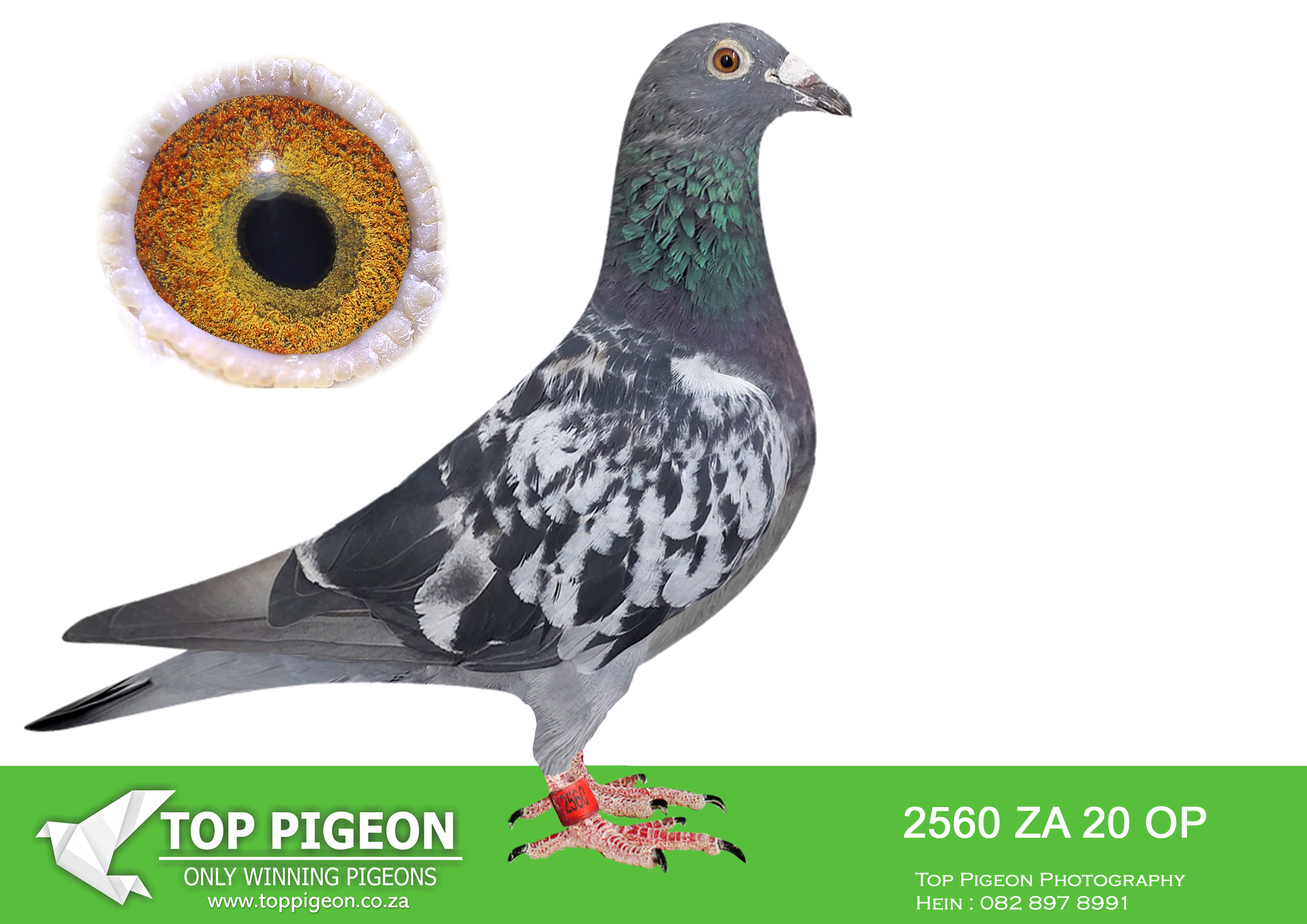 LOT 18 ANDRE ERASMUS “TSUNAMI LOFTS” – 2560 ZA 20 OP -SIRE 22452 SA OP 05 – Super Breeder Directly bred from the legendary 80K Pair, one of the most famous breeding pairs in South African pigeon racing. This cock has proven himself as an exceptional breeder and has produced multiple top-performing pigeons.————DAM 2094 ZA CYRILS 16 – “Double 80” A well-bred hen carrying the strong Tom Locks performance bloodlines, combining proven racing ability with elite breeding power. She is the dam of 2560 ZA OP 20 and brings together the blood of 19150 SA THU 02 “R80 000 Super Cock” and 1648 SA THU 03 “Double Winner”, two pigeons that dominated with multiple Sampo Gold Medals and are recognized as elite producers.SEE PEDIGREE!!!!