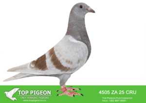 .LOT 9 BANIE DEETLEFS -4504 ZA 25 CRU -SIRE:709 J&B 24.Du Preez&Deetlefs SAME BLOODLINE – UNTOUCHABLE & BULLIT. SIRE IS 2331 WHICH IS SIRE TO “UNTOUCHABLE” SUPER RACER AFRIKAPRO 2025. DAM IS 518 – SOLD FOR R279,000.00 BRED 2 SANPO MEDAL WINNERS 2023 BRED WINNERS SISTER BRED 8 X SANPO MEDAL WINNER.————DAM:401 J&B 23 Colour: MEAL Du Preez&Deetlefs SCORED 7 TIMES CLUB 2024. SIRE IS TURBO KITTEL Colour: MEAL Du Preez&Deetlefs 5XWINNER IN FIRST YEAR BEST PIGEON IN SOUTH AFRICA 8 X SANPO MEDAL WINNER 6 X GOLD 1SILVER AND 1 BRONZE BEST YEARLING BIRD UNION BEST MIDDEL DISTANCE BIRD UNION BEST BIRD UNION BRED 7 WINNERS ALREADY.SEE PEDIGREE!!!!