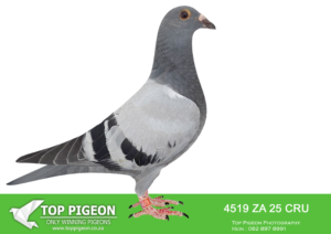 LOT 17 BANIE DEETLEFS -4522 ZA 25 CRU -SIRE:3108117 BE 24. SIRE IS 519 – S0LD FOR R101,500.00 SISTER BRED 8X SANPO MEDAL WINNER SISTER ABL -20 167 (SOLD FOR R338 000.00 ON TOPPIGEON)- BRED 14 WINNERS SISTER ABL -20 168 (SOLD FOR R242 000.00 ON TOPPIGEON) – BRED 7 WINNERS SISTER ABL -21 520 (SOLD FOR R75 000.00 ON TOPPIGEON)- BRED WINNERS.———-DAM:906 J&B 24 Colour: RC. SIRE IS 574 – SOLD FOR R36,500.00 FATHER 21-1685 – FULL BROTHER OF “TURBO KITTEL” 1685 – 5 BROTHERS & 1 SISTER – WINNERS.SEE PEDIGREE!!!