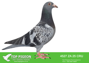 LOT 16 BANIE DEETLEFS -4527 ZA 25 CRU -SIRE:753 J&B 24. DU PREEZ & DEETLEFS. SIRE WERE SOLD FOR R45 000.00 ON TOPPIGEON.———DAM:742 J&B 24 Colour: BB Du Preez&Deetlefs MOTHER 1116 IS HALF SISTER BULLIT & 2331. 2331 IS SIRE TO “UNTOUCHABLE ” WHICH WERE SUPER RACER AFRIKAPRO 2025.SEE PEDIGREE!!!