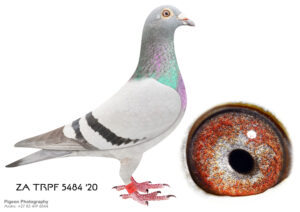 LOT 20 CORRIE NAUDE 2 – ZA 20 TRPF 4858 -SIRE:29737 ZA 15.Sanpo Gold Medal Pair The father is Seabiscuit who was the SANPO Gold Medal winner. The best bird over all distances. Mated to Hetti. One of the best Million Dollar Race pigeons, bred out of Gabi Vandenabeele bloodline. The legendary Wittenbuik cock in Belgium.———DAM:3036 ZA GPU 18 Gold Medal BBPD Sanpo Gold & Silver Medal Pair Short Dis The Sire of this hen is a Spritzie Jansen Cock and 3 x winner. Best pigeon in the WRRPA and one of the SANPO Gold Medal Short Distance winners. The Dam of this hen is my SA National Pigeon Organisation Silver Medal Winner Short distance 2013.SEE PEDIGREE!!!!
