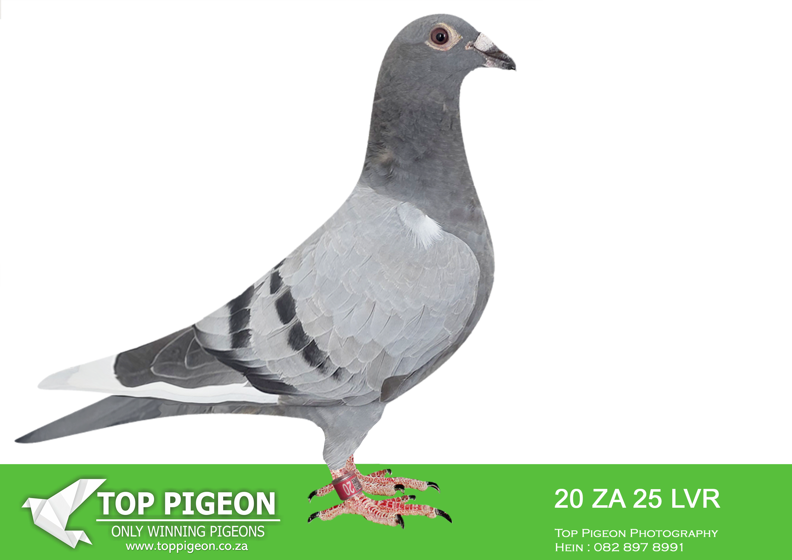 LOT 18 KITTEL AUCTION – ZA 25 LVR 20 -SIRE:1310 ZA 24 ABL.Strain: ALWYN BESTER Color: Blue Chequer Officially 3rd SAIPR FINAL 2025. 4 Pigeons on the drop. Lost by 4 seconds.————-DAM:DAM:175 ZA 24 LVR. KITTEL. BRED FROM SOME OF THE BEST KITTEL GENETICS OF ALWYN BESTER.SEE PEDIGREE!!!