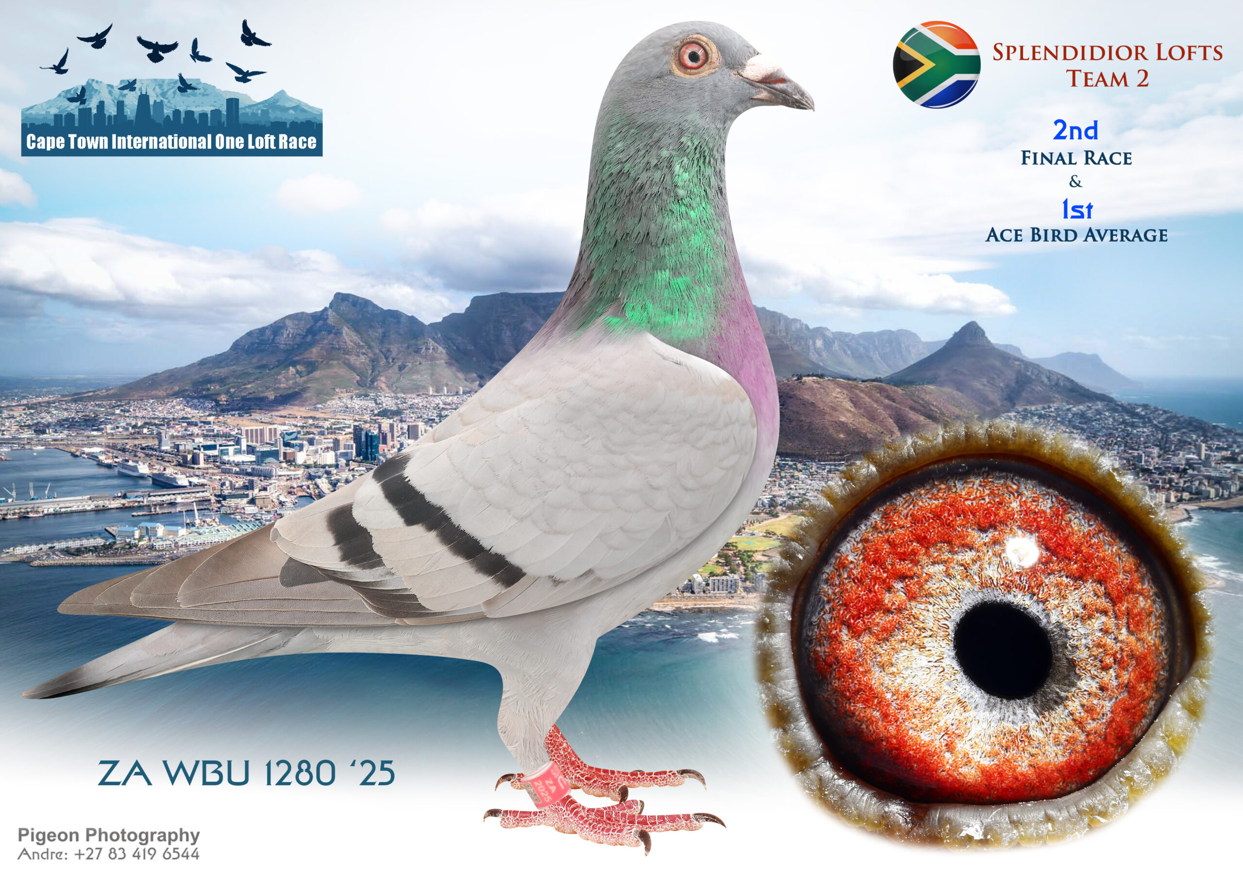 .LOT 2 CAPETOWN LOFTS – Splendidior Lofts Team 2-ZA-WBU-25-1280*** -2nd Final Race Winning R70 000.00 , 1st Ace Bird Winning R50 000.00 , 1st HS 2 Winning R10 000.00—FULL SIBLING WON VIC WES RACE AT KLAPMUTS WINTER SERIES IN 2025.———SIRE:7923 TRPF 20.IN PEDIGREE—1ST SAMDPR FULL BROTHER TO HALLOVER FULL SISTER TO LAURA IS A BIG WINNER UNTAMED DESERT 2ND SAMDPR—SAID IN SPUN SILVER.————-DAM:10893 TRPF 18 DEMKO`S BEST BB Ganus/Laureaat GYSELBRECHT/ VAN BRAUNE INBRED MONA LISA X LAUREAAT MOTHER OF 1280- HOTSPOT 2 WINNER KLAPMUTS—2025– —ALSO MOTHER OF 18437-WINNER VIC WES RACE KLAPMUTS 2024.SEE PEDIGREE!!!!