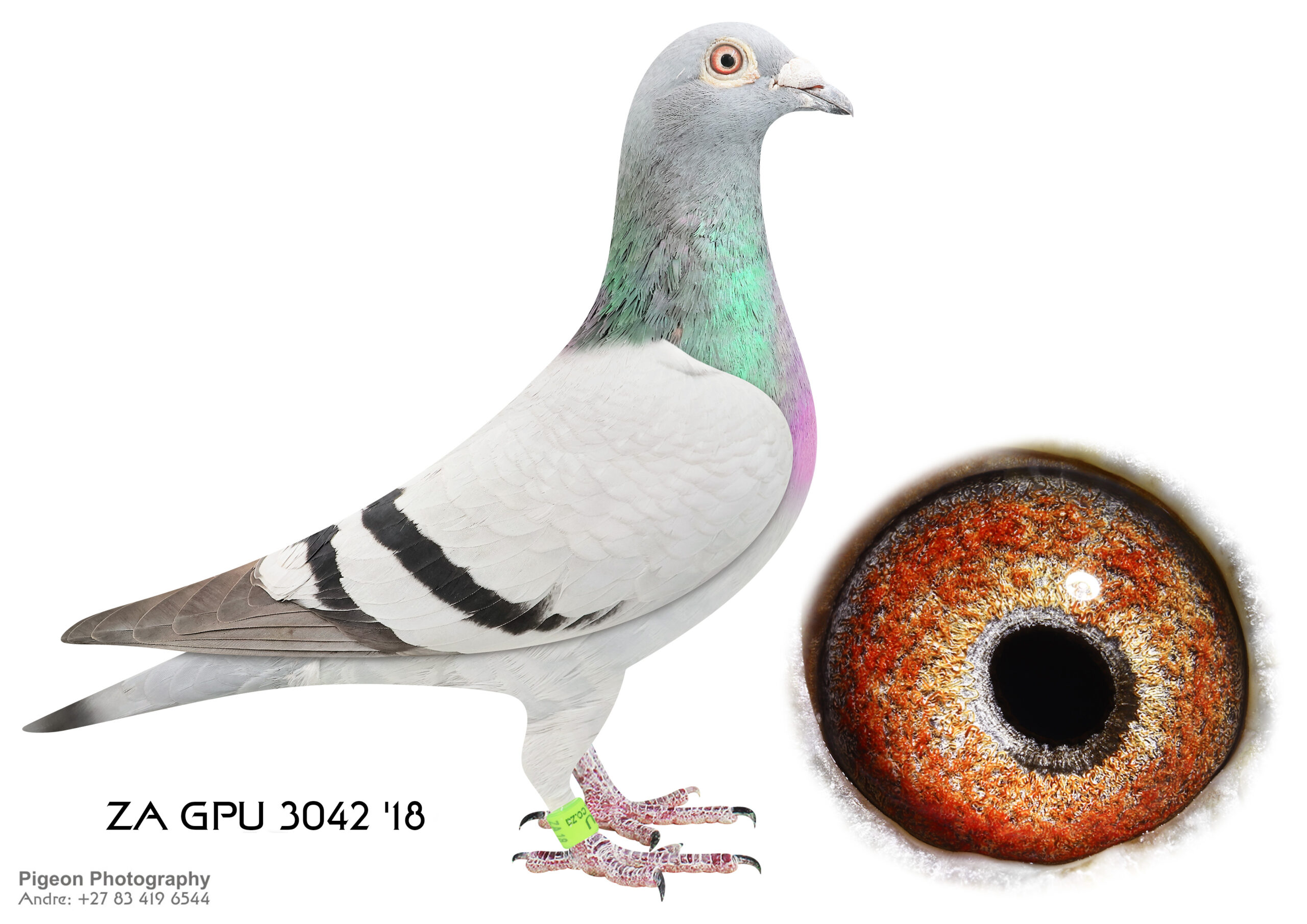 .LOT 2 CORRIE NAUDE – ZA18 GPU 3042 -SIRE:29611 ZA 15.Kannibaal This cock was escpecially bred for stock with the best Kannibaal line for inbreeding.———–DAM:24573 TRPF 14 4 X WINNER KANNIBAAL BB Kannibaal Her 1st offspring was bred in my race loft. (CH Cock 5205, he became the Best Long Distance in the Gauteng Pigeon Union). A top breeding hen in my loft. Excellent racer, best Short Distance bird in GPU. Flew 2nd in the Gauteng Prov. Combine with 7200 pigeons.SEE PEDIGREE!!!