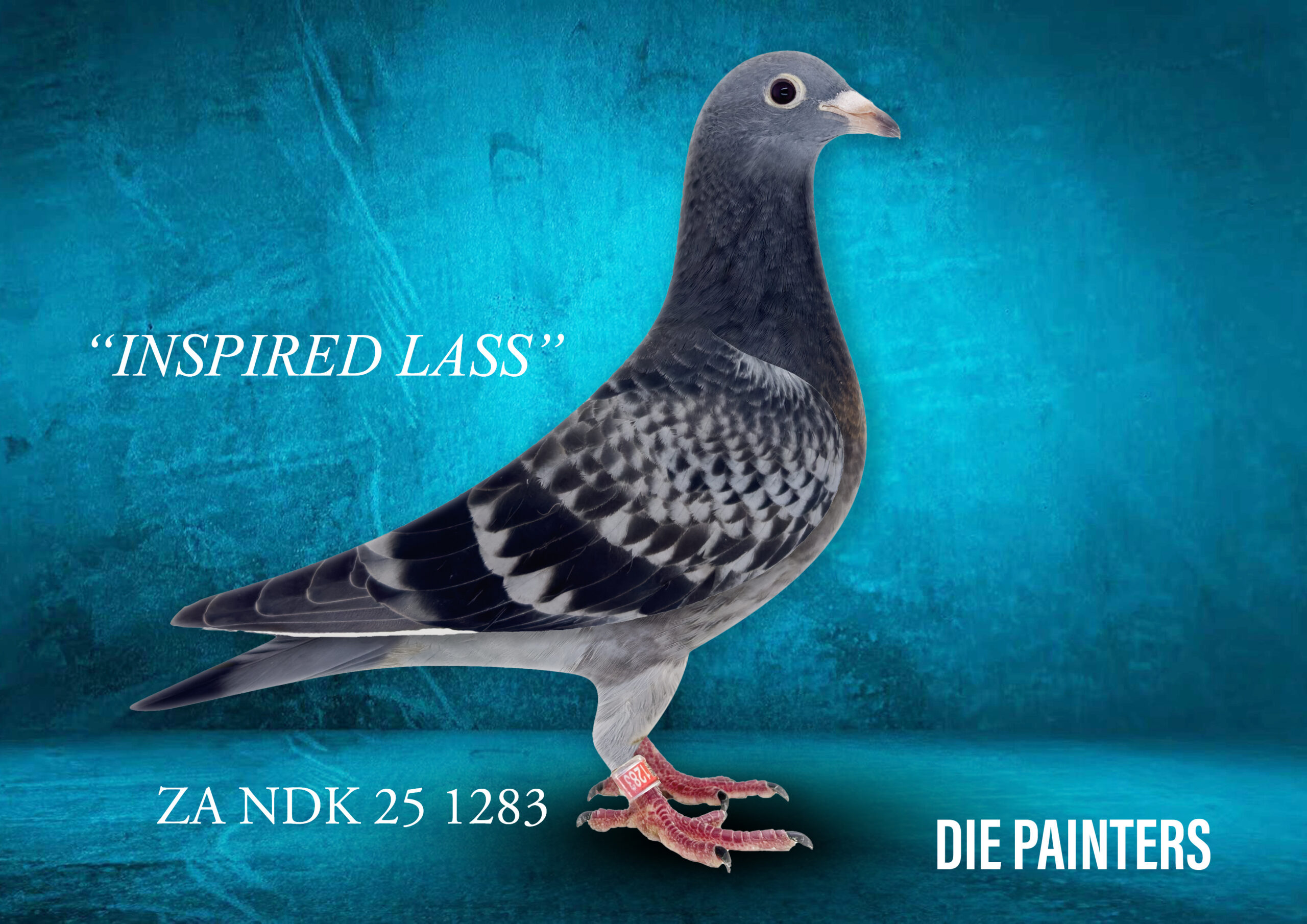 .LOT 2 DIE PAINTERS – ZA 25 NDK 1283 -This baby hen is destined to become a superstar racer and breeder. She has everything we look for in our family of pigeons. Bred out of one of Henrico’s most highly rated pairs of young stock pigeons. The father is the son of one of our most famous pairs – “SKAAM COCK” X “17 x WINNER” has bred many of our famous stars like Dinokeng star performer “SHY LASS” and her sister the great “SUPREME LASS” who is a Combine Winner and 7 X Winner. The mother was bred for stock out of he famous “SPRINGBOK” when mated to his own daughter “CHOICE”. Sher is the fullsister of “PINNACLE” our top Painter Putterie breeder and father of our star racer “PINORA”.SEE PEDIGREE!!!