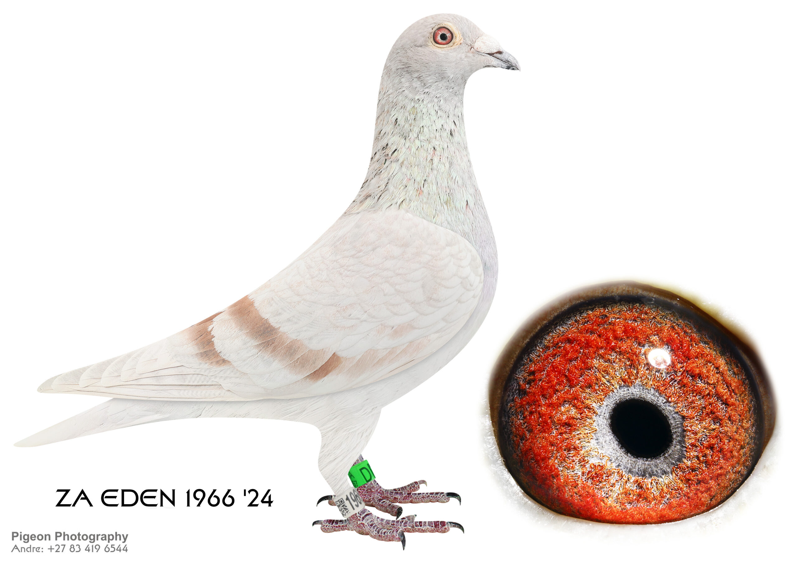 .LOT 4 MASTERS AUCTION – ZA 24 EDEN 1918 -SIRE:28235 ZA 16.Inbred Houben-Clausing His father is Vinkie and he is a Grandson of Ziko SA who bred my Houben-Clausing winning pigeons. This cock bred us 5 times wining positions. All the birds out of this cock can be put to stock. Bred 3rd place ERPF winner from Kimberley (650 km).————DAM:7798 ZA TRPF 20 Houben-Clausing MIEL Houben-Clausing Houben-Clausing inbred bird. This hen also breed winners with different cocks. A great hen. Mother to a ERPF federation winner. 1st place ERPF federation winner from Groblershoop (580 km).SEE PEDIGREE!!!!
