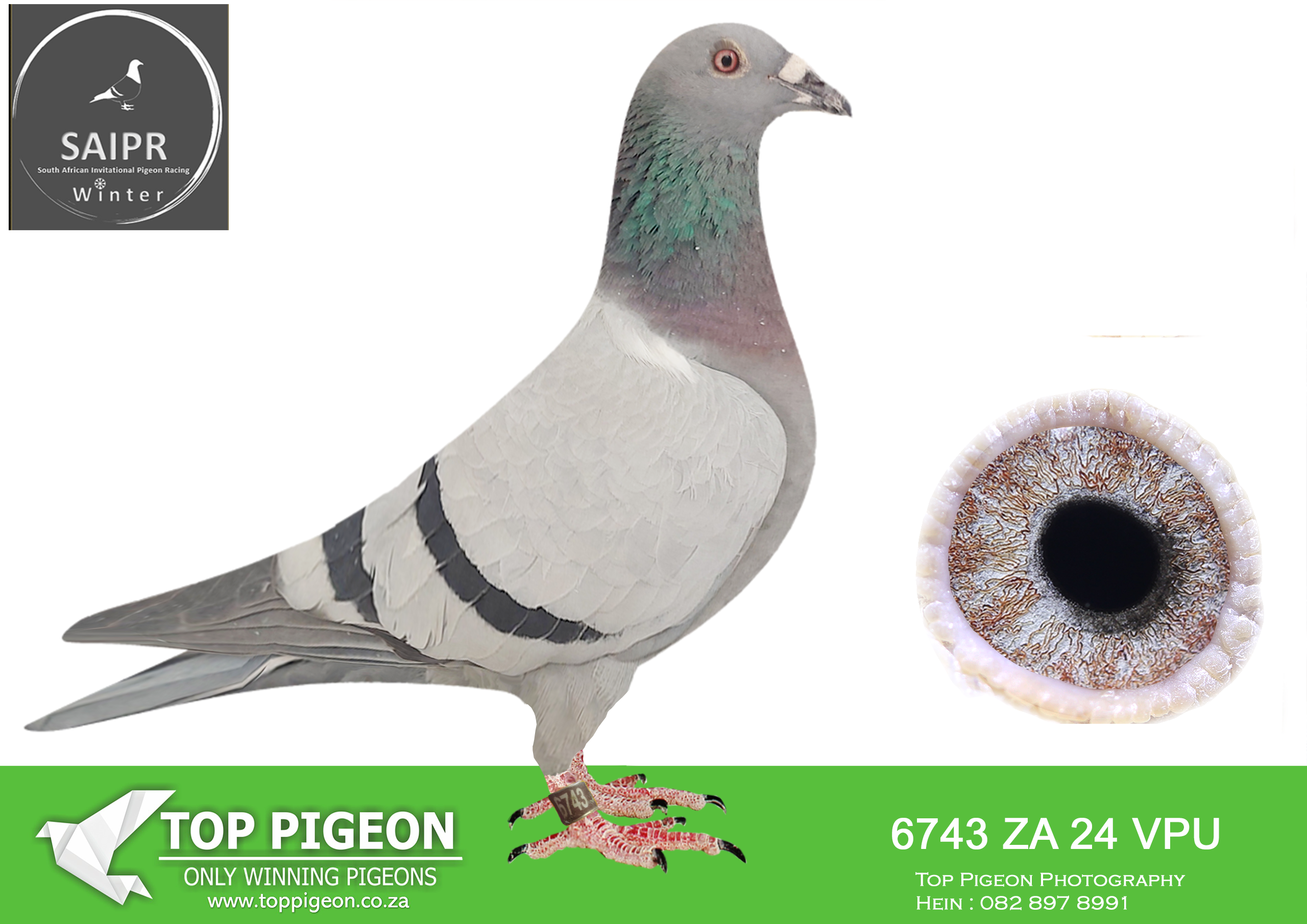 LOT 25 SAIPR AUCTION A – Willie Munnik 2-ZA SANPO 11923 2024 · CHALLENGE -SIRE: HCC 21 ZA 1081. Strain: TOM LOCK/SAMDPR WINNING L Color: BLUEBAR EQUEL 1ST PLACE ALLFLITE SUMMER RACE 2022 SUPER GENES IN THIS PIGEON. TOM LOCK/SABLON-810-/SAMDPR WINNING LINES ACE BIRD SUMMER ODL ALLFITE 2022(AVE SPEED 946,1375MPM————–DAM; 4065 NRHU 24 ZA .Strain: KITTEL Color: BLUEBAR COMPETE IN AFRIKA PRO. 51TH FINAL RACE AND ON THE DAY BIRD.SEE PEDIGREE!!!