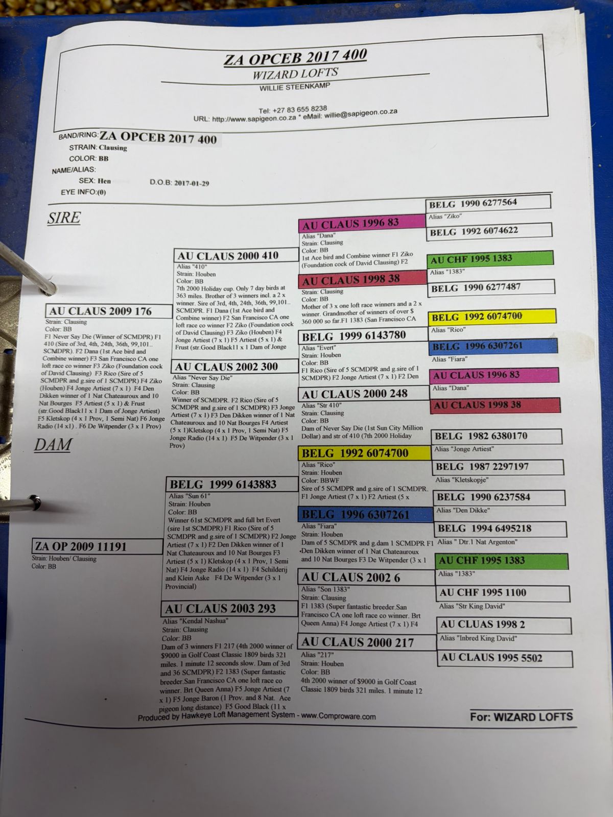 Racing pigeon auctions in SA and abroad