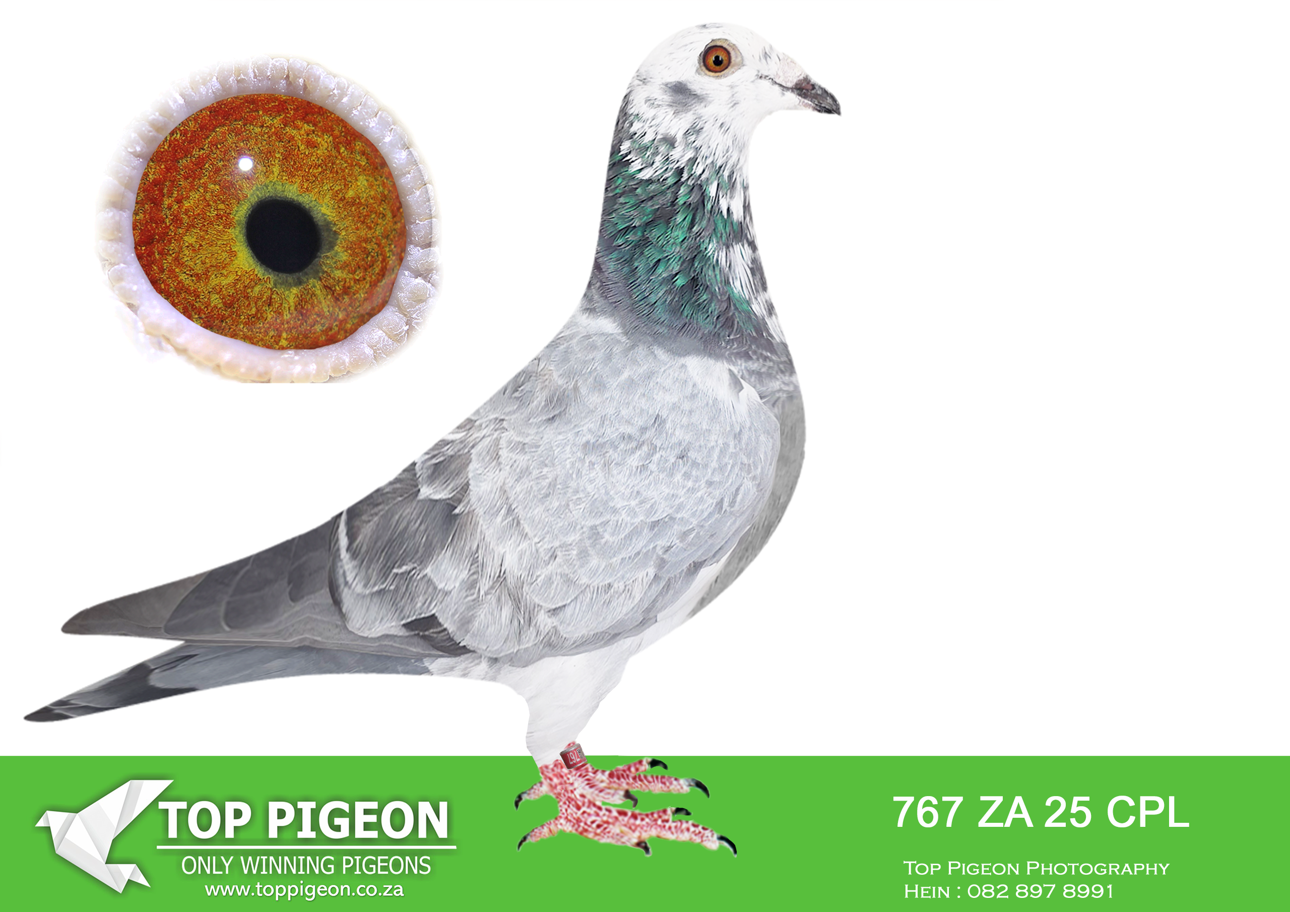 LOT 19 ANDRE ERASMUS “TSUNAMI LOFTS” – 3 BPFW 26 -ONLY TWO COCKS BRED OUT OF THIS CLICK PAIR.ONE SENT TO MARLBANK OLR, THIS ONE KEPT FOR STOCK. SISTERS ARE 4297 ZA 2024 AND 2525 BPF 2025. BOTH IN FIRST ACE BIRDS AT CPL OLR——————SIRE: 8653 ZA VPU 22 – “Click TL Cock” A powerful Tom Lock bred cock already proving himself as a top breeder. Sire to 5th Ace CPL YB 2023 Same pigeon also 7th Super Ace CPL 2023 Sire to 6th Ace YB CPL 2024 His best click is with SANPO 22470/22 The sire line traces back to the famous “Super R80 Cock” (05485 ZA GPU 17) — a direct son of the R80 000 Foundation Cock line, responsible for numerous winners and 12× SANPO Gold medal influences in the pedigree. This family is renowned for producing top racers in Union competition and One Loft Races.————–DAM: 22470 SANPO 22 – “70” An outstanding Sablon-based hen already proving herself as a producer. Dam to 5th Ace Bird Yearlings CPL Dam to 7th Super Ace CPL – ZA 2024-4297 Dam to 6th Ace CPL YB 2025 Her lineage includes the famous Hopetown Cock (6173 NKHPT 21) — grandsire of four Ace Birds at CPL OLR in the last three years. She is also closely connected to the 810 Sablon Collection, through 14810 ZA 15 “Fine Design”, a phenomenal breeding hen whose offspring show an 80% strike rate in major OLR competitions.SEE PEDIGREE!!!!