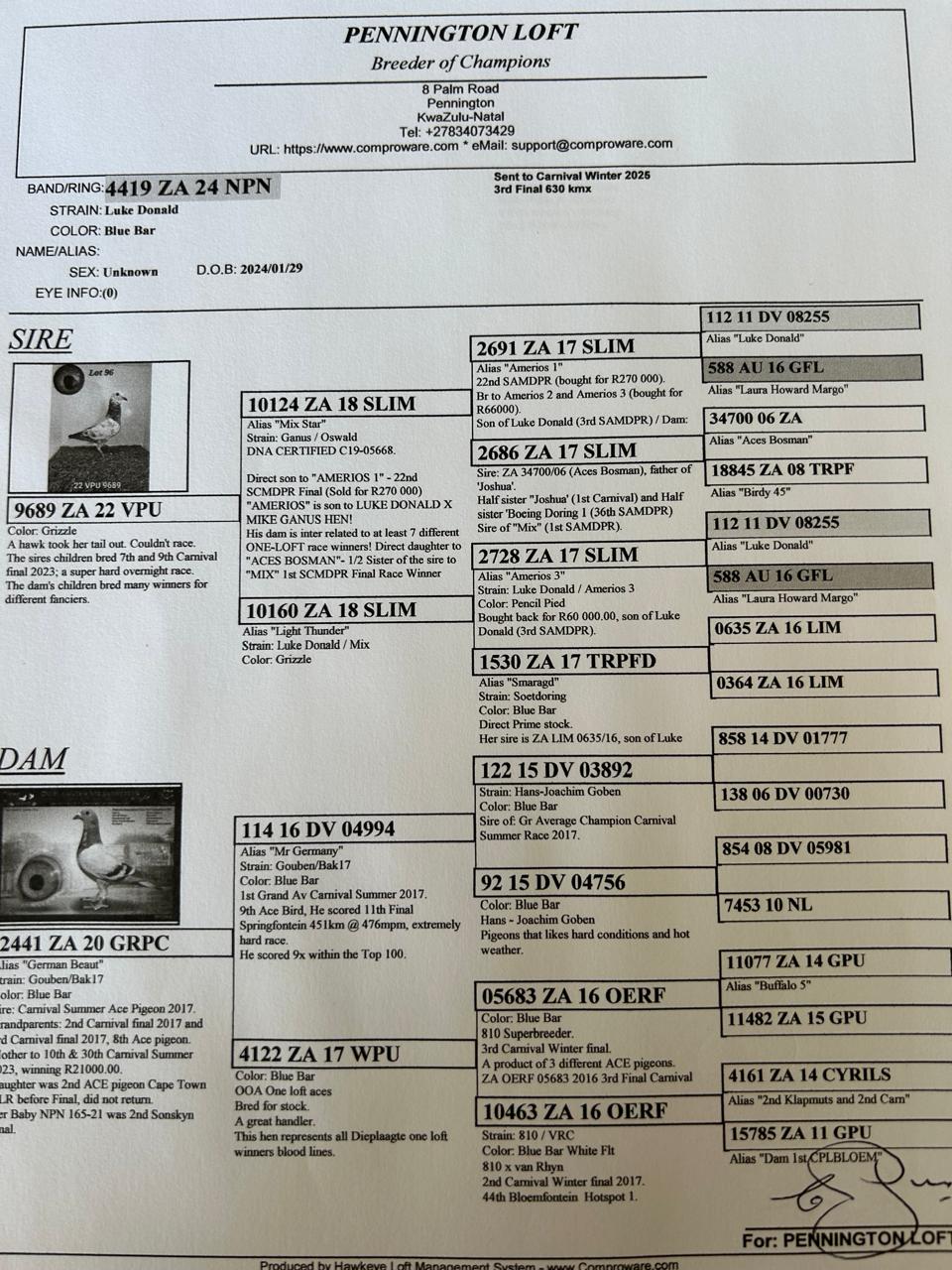 LOT 50 CARNIVAL LOFTS OLR – Pigeon Power-KUYS 24 52 –
