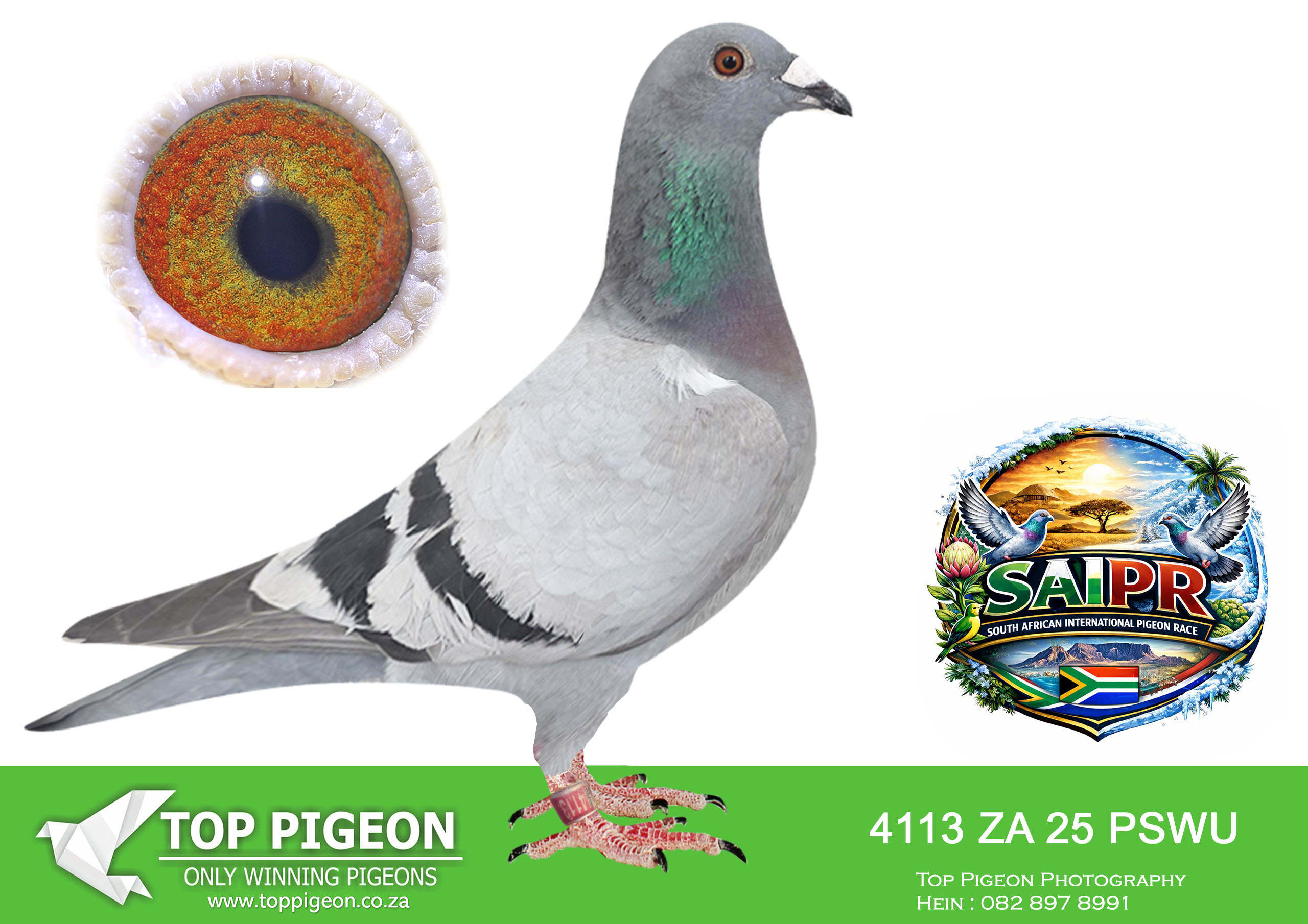 .LOT 8 SAIPR SUMMER AUCTION 1 – ES/ZE/Chane- GRPF 0443 2025 -8TH HOTSPOT 2 EQUAL WINNER–7TH HOTSPOT ACE BIRD——–SIRE:21 NL 1293750.Alias “1/2 BRO WORLD CHAMP 2023” Strain: BEST KITTEL X KITTEL Color: CHPIED NL 1293750/21- WOW! What a cock! 8/10 AND 10/10 Throat.————–DAM:ZA 17 GPU 08399.Alias “1ST ACE LD CARNIVAL 2018” Strain: Carnival LD ACE Color: Bb.ZA GPU 08399/17- 1st Ace Pigeon Long DistanceCarnival Club Competition 2018!, 7th Overall Ace 2018. 1st Colesberg Race 9, 523km, 1229 vel- Won the race with 7 minutes.SEE PEDIGREE!!!