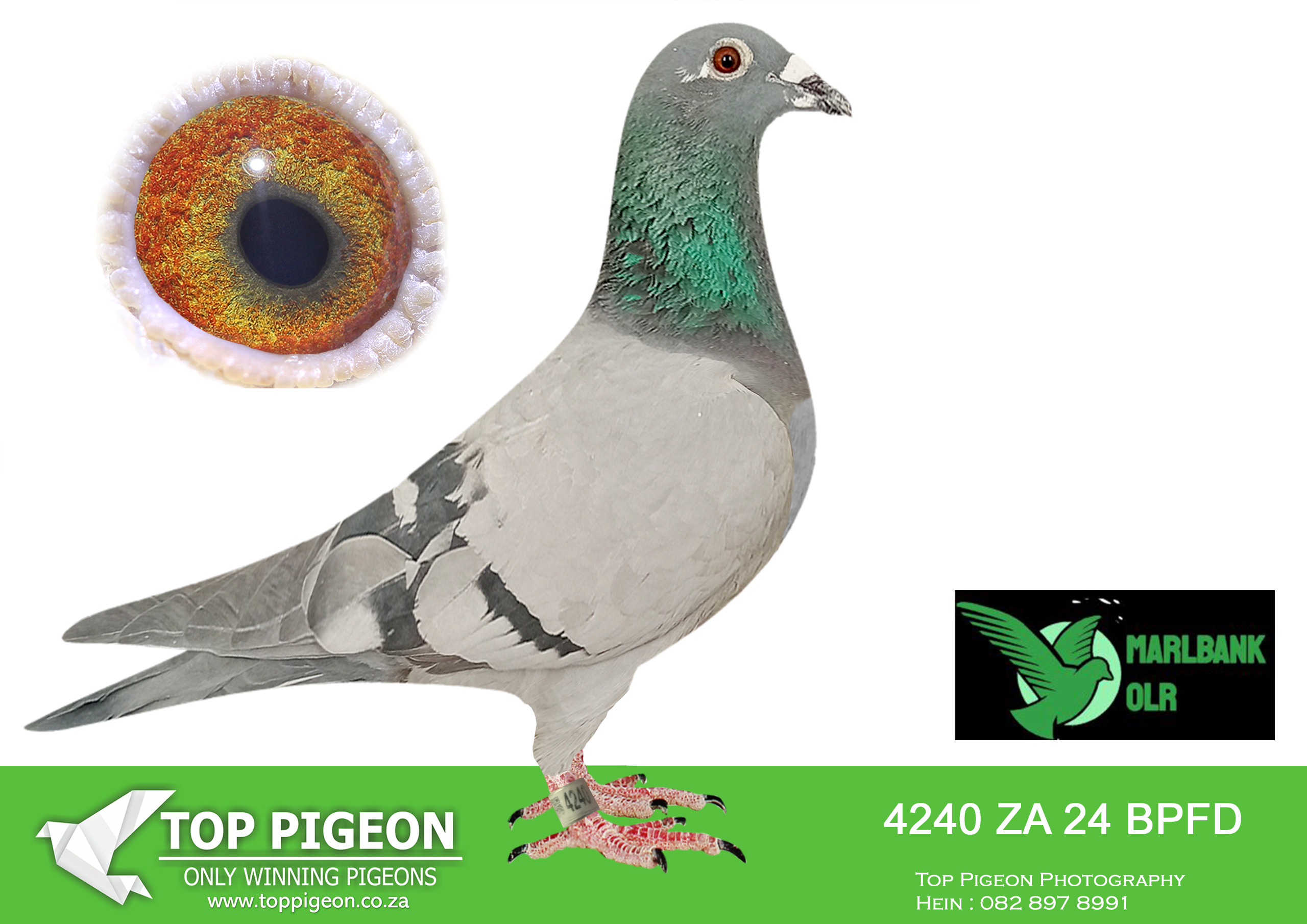 LOT 94 MARLBANK OLR – EAST OF EDEN-ZA-24-ODRA-22257 ——-11TH ACE BIRD—-SIRE:ZA 19 BPF 1508. BOUGHT FROM JJJ VD LINDE AS A BABY FOR R16 000.00 . DIRECTLY BRED OUT OF JIMMY’S BOY AND HETTIE’S GOLD. HETTIE’S GOLD IS THE NESTMATE TO JBM’S GIRL WHO WERE SOLD FOR R86 000.00 ON TOPPIGEON.————-DAM:ZA 18 BORD 5758 . BEST BIRD IN CLUB 2020. BRED FROM VAN RIEL BLOODLINES.SEE PEDIGREE!!!