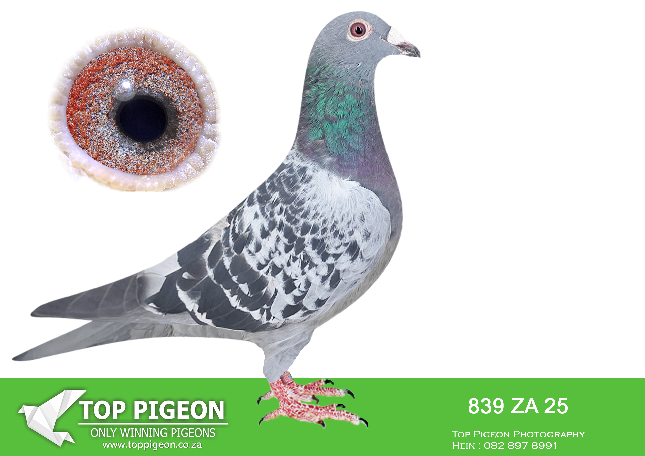 .LOT 2 ANDRE ERASMUS “TSUNAMI LOFTS” – 22479 SANPO 22 -SIRE: 6173 NKHPT 21 – “HOPETOWN COCK” A powerful Sablon-bred cock loaded with proven 810 Sablon Superbreeder blood, one of the most dominant long-distance and One Loft Race breeding lines in South Africa. He is already proving himself in the breeding loft as grandsire to four Ace Birds at CPL OLR over the last three years, showing his ability to pass on class, durability and race intelligence. 22479 His pedigree combines the best of the Jimmys Boy × Pippa Sablon cross: Jimmys Boy (2004 CYRILS 16) – immediate success at stock, breeding top One Loft performers including 2nd Hotspot winner CPL and 6th Final Klapmuts OLR performers. Pippa (2656 SVPV 17) – heavily inbred to the legendary 810 Sablon, from a family responsible for numerous winners. She is full sister to Rocky, Fine Design and Rough Design, all outstanding breeders of winners.———–DAM: 14810 ZA 15 – “FINE DESIGN” An outstanding 810 Sablon Collection hen and one of the key breeding hens behind the Tsunami Loft success story. She is dam to 3rd SAPIR OLR SVPV 2906/16 and has produced numerous winners and federation winners, with offspring performing at a remarkable 80% strike rate in major One Loft Races including: CPL OLR Dinokeng OLR Genetic Lofts Cradock OLR SAPIR OLR 22479 Her pedigree is built around two elite Sablon producers: 4615 CYRILS 14 – “Boytjie” Great-grandfather to 1st, 2nd and 7th Final Dinokeng OLR 2022 Multiple club and combine winners in the family Source of strong One Loft Race performance genetics. 22479 4864 ZA CYRILS 14 – “JBM’s Girl” Great-grandmother to 1st Final Dinokeng OLR 2022 Family responsible for multiple final race winners and Ace Pigeons including Winners Flight Lofts champions. 22479 With this combination, Fine Design represents the very heart of the 810 Sablon elite breeding line.SEE PEDIGREE!!!!